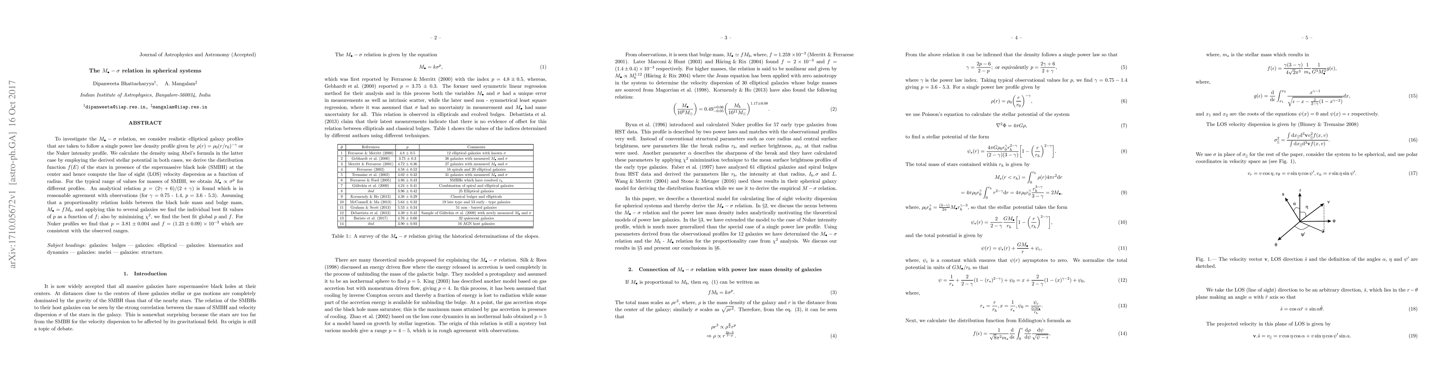 This paper investigates the $M_{\bullet} - \sigma$ relation in elliptical galaxies, deriving an analytical expression for the proportionality constant $p$ based on galaxy density profiles. The study finds that $p$ is in reasonable agreement with observations and determines best fit values for $p$ and $f$ for several galaxies, consistent with observed data.