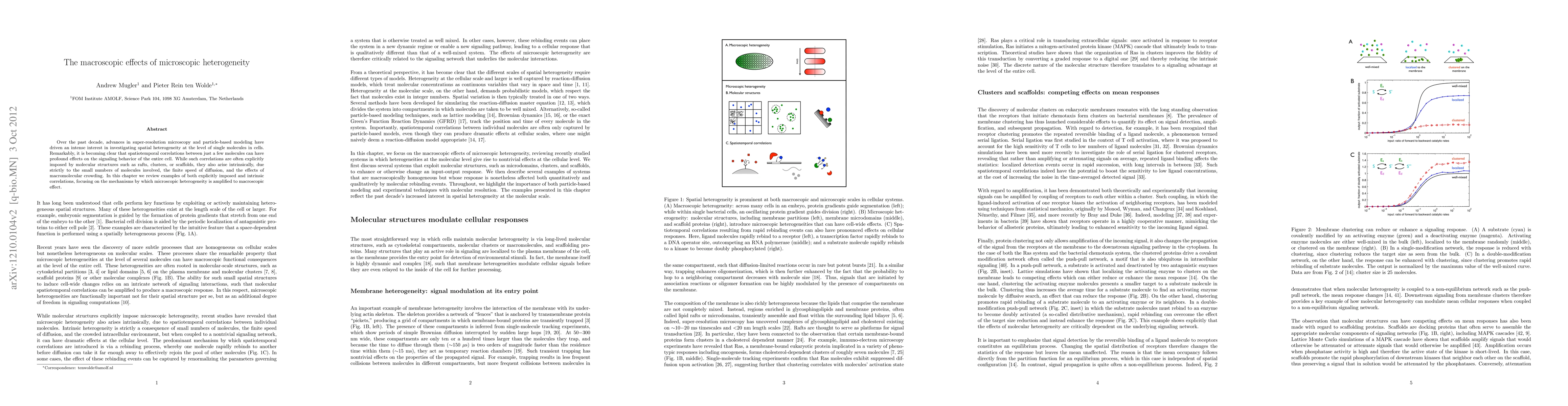 Over the past decade, advances in super-resolution microscopy and particle-based modeling have driven an intense interest in investigating spatial heterogeneity at the level of single molecules in cells. Remarkably, it is becoming clear that spatiotemporal correlations between just a few molecules can have profound effects on the signaling behavior of the entire cell. While such correlations are often explicitly imposed by molecular structures such as rafts, clusters, or scaffolds, they also arise intrinsically, due strictly to the small numbers of molecules involved, the finite speed of diffusion, and the effects of macromolecular crowding. In this chapter we review examples of both explicitly imposed and intrinsic correlations, focusing on the mechanisms by which microscopic heterogeneity is amplified to macroscopic effect.