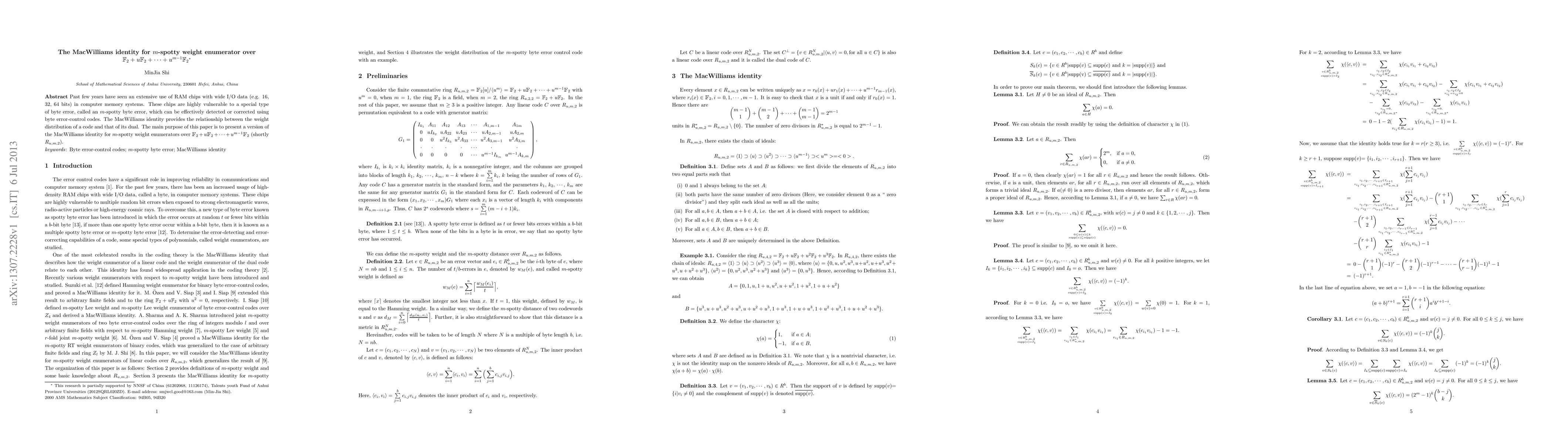 This paper develops a version of the MacWilliams identity for $m$-spotty weight enumerators over the ring $R_{u, m, 2}$, which is crucial for detecting and correcting $m$-spotty byte errors in high-capacity RAM chips used in computer memory systems. The identity provides a relationship between the weight distribution of a code and its dual.