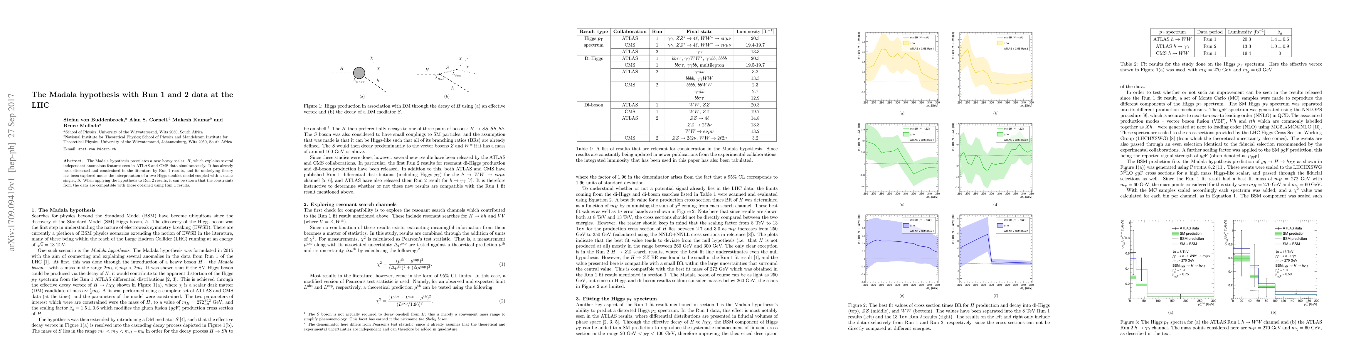 Summary: The Madala hypothesis introduces a new heavy scalar, H, to explain anomalies in ATLAS and CMS data. It aligns with Run 1 LHC results and a two Higgs doublet model with a scalar singlet, S. Run 2 data also supports these constraints, confirming compatibility with earlier findings.
