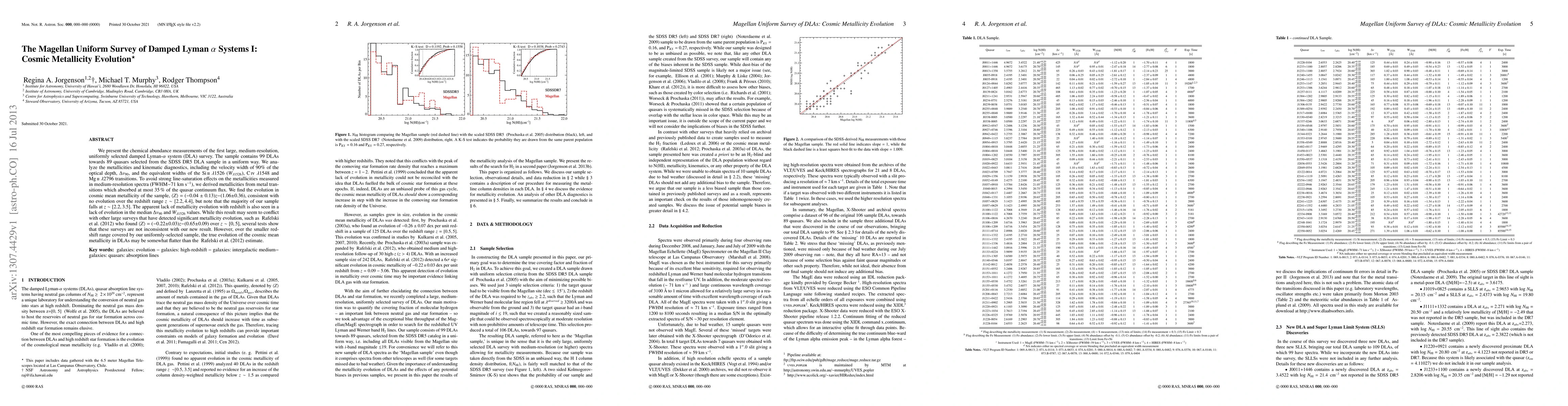 medium-resolution, uniformly selected damped Lyman alpha system (DLA) survey.