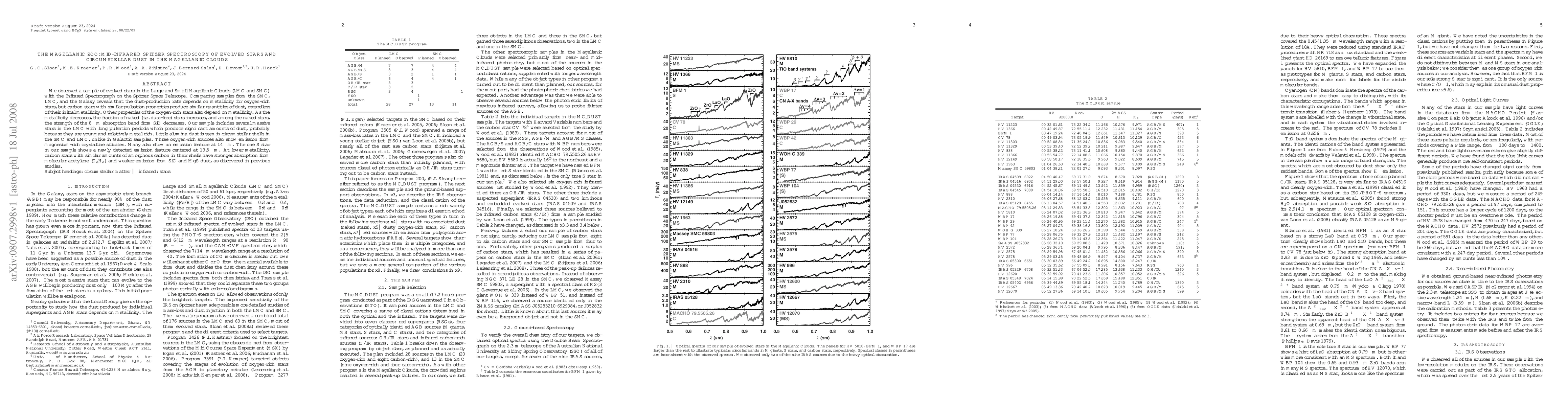 This paper uses Spitzer Space Telescope data to study evolved stars in the Large and Small Magellanic Clouds, finding that dust production in oxygen-rich stars correlates with metallicity, while carbon stars produce similar dust quantities regardless of metallicity. It also notes a higher fraction of dust-free stars at lower metallicity and unique dust characteristics in the Magellanic Clouds compared to the Galaxy.