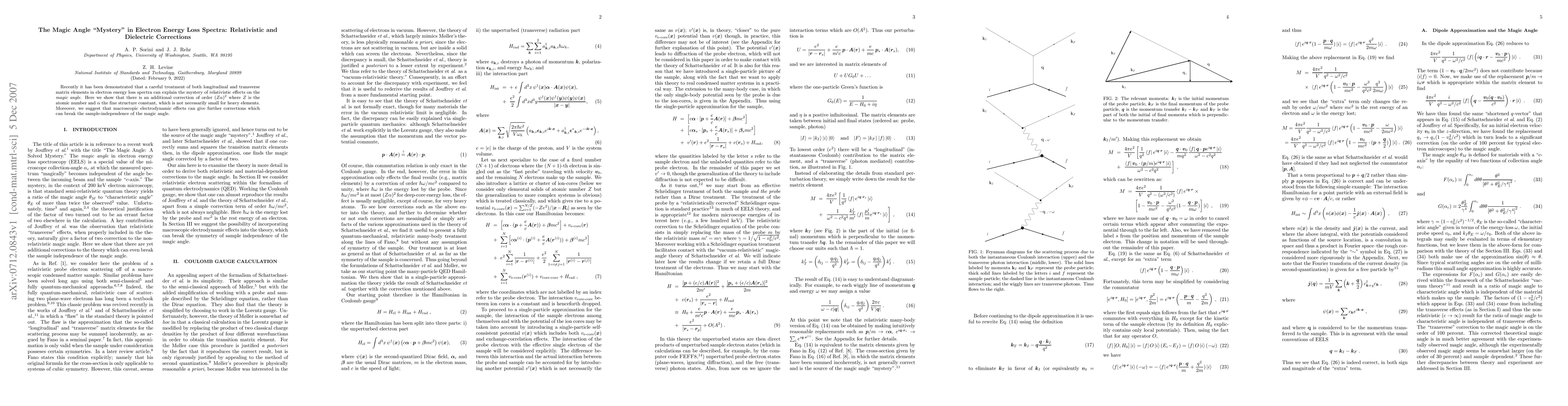 This paper explains the mystery of relativistic effects on the "magic angle" in electron energy loss spectroscopy by considering both longitudinal and transverse matrix elements. It also identifies additional corrections of order $(Z\alpha)^2$ and suggests that macroscopic electrodynamic effects can further modify the magic angle, potentially breaking its sample-independence.