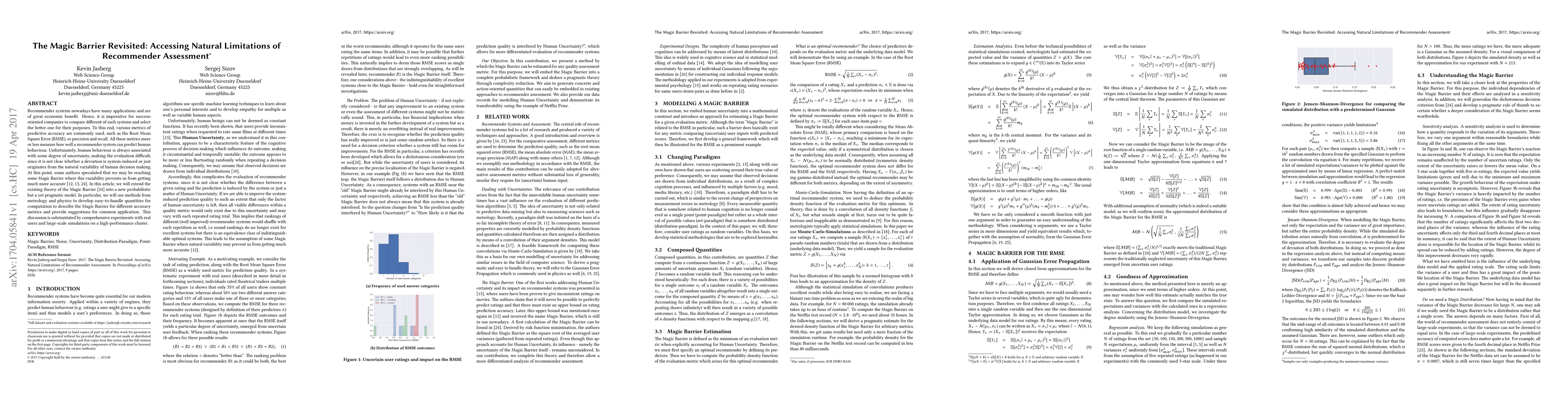 Recommender systems nowadays have many applications and are of great economic benefit. Hence, it is imperative for success-oriented companies to compare different of such systems and select the better one for their purposes. To this end, various metrics of predictive accuracy are commonly used, such as the Root Mean Square Error (RMSE), or precision and recall. All these metrics more or less measure how well a recommender system can predict human behaviour. Unfortunately, human behaviour is always associated with some degree of uncertainty, making the evaluation difficult, since it is not clear whether a deviation is system-induced or just originates from the natural variability of human decision making. At this point, some authors speculated that we may be reaching some Magic Barrier where this variability prevents us from getting much more accurate. In this article, we will extend the existing theory of the Magic Barrier into a new probabilistic but a yet pragmatic model. In particular, we will use methods from metrology and physics to develop easy-to-handle quantities for computation to describe the Magic Barrier for different accuracy metrics and provide suggestions for common application. This discussion is substantiated by comprehensive experiments with real users and large-scale simulations on a high-performance cluster.