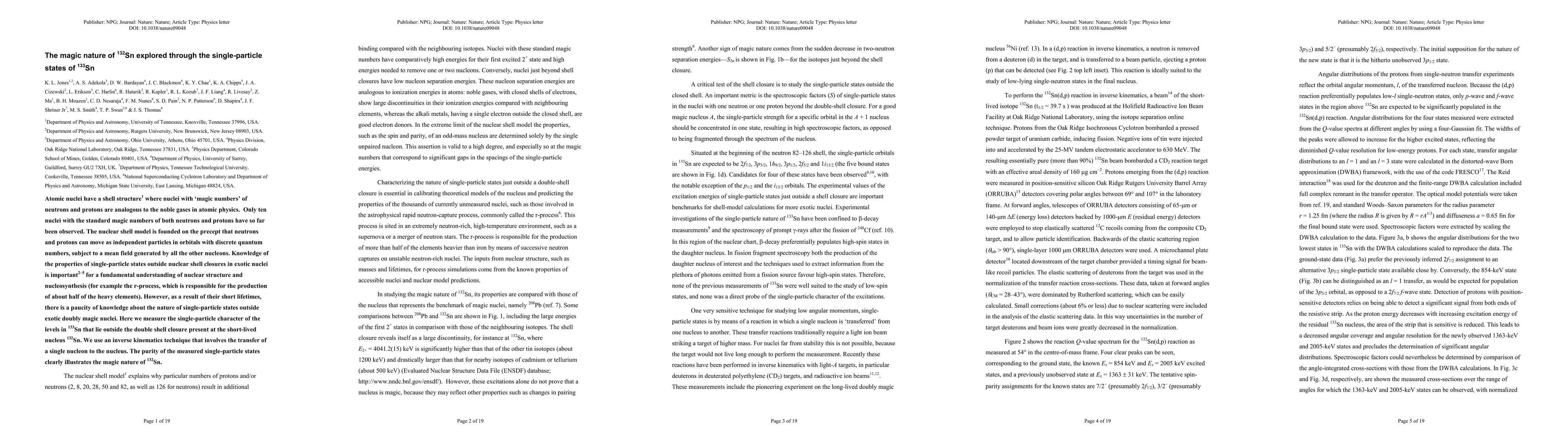 Atomic nuclei have a shell structure where nuclei with 'magic numbers' of neutrons and protons are analogous to the noble gases in atomic physics. Only ten nuclei with the standard magic numbers of both neutrons and protons have so far been observed. The nuclear shell model is founded on the precept that neutrons and protons can move as independent particles in orbitals with discrete quantum numbers, subject to a mean field generated by all the other nucleons. Knowledge of the properties of single-particle states outside nuclear shell closures in exotic nuclei is important for a fundamental understanding of nuclear structure and nucleosynthesis (for example the r-process, which is responsible for the production of about half of the heavy elements). However, as a result of their short lifetimes, there is a paucity of knowledge about the nature of single-particle states outside exotic doubly magic nuclei. Here we measure the single-particle character of the levels in 133Sn that lie outside the double shell closure present at the short-lived nucleus 132Sn. We use an inverse kinematics technique that involves the transfer of a single nucleon to the nucleus. The purity of the measured single-particle states clearly illustrates the magic nature of 132Sn.