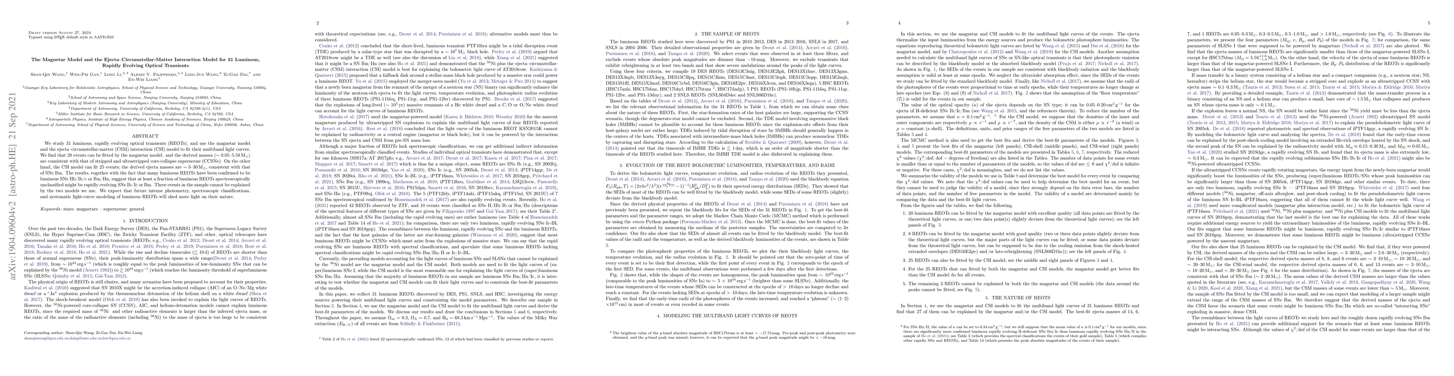 This paper investigates 31 luminous, rapidly evolving optical transients (REOTs) using the magnetar model and ejecta--circumstellar-matter interaction model, finding that 28 events align with magnetar-driven phenomena and 25 with ejecta-CSM interactions, suggesting a connection to rapidly evolving supernovae. Three events remain unexplained.