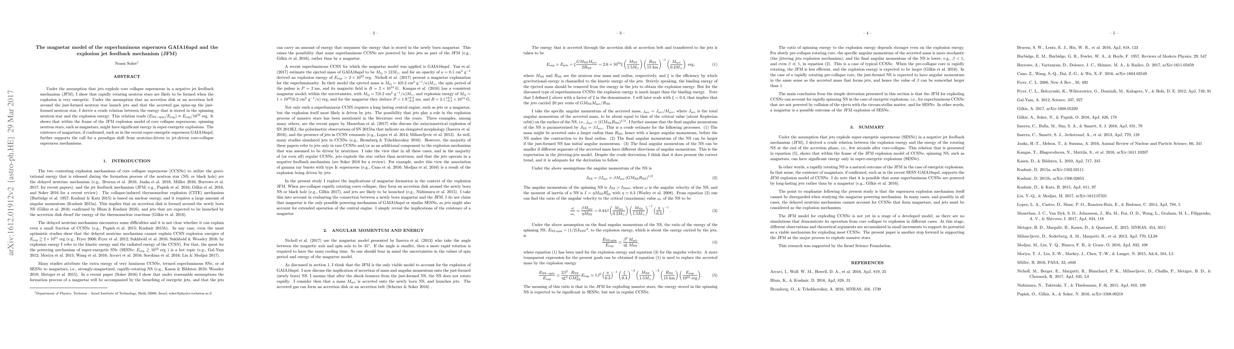 Under the assumption that jets explode core collapse supernovae in a negative jet feedback mechanism (JFM), I show that rapidly rotating neutron stars are likely to be formed when the explosion is very energetic. Under the assumption that an accretion disk or an accretion belt around the just-formed neutron star launch jets and that the accreted gas spins-up the just-formed neutron star, I derive a crude relation between the energy that is stored in the spinning neutron star and the explosion energy. This relation reads Espin/Eexp~(Eexp/1e52erg). It shows that within the frame of the JFM explosion model of core collapse supernovae, spinning neutron stars, such as magnetars, might have significant energy in super-energetic explosions. The existence of magnetars, if confirmed, such as in the recent super-energetic supernova GAIA16apd, further supports the call for a paradigm shift from neutrino-driven to jet-driven core-collapse supernova mechanisms.