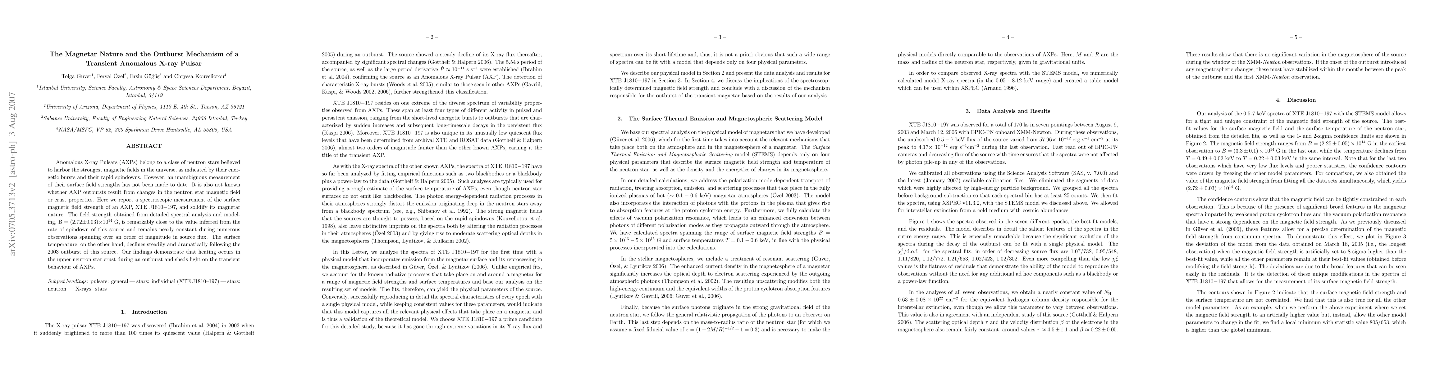 Anomalous X-ray Pulsars (AXPs) belong to a class of neutron stars believed to harbor the strongest magnetic fields in the universe, as indicated by their energetic bursts and their rapid spindowns. However, an unambiguous measurement of their surface field strengths has not been made to date. It is also not known whether AXP outbursts result from changes in the neutron star magnetic field or crust properties. Here we report a spectroscopic measurement of the surface magnetic field strength of an AXP, XTE J1810$-$197, and solidify its magnetar nature. The field strength obtained from detailed spectral analysis and modeling, B = (2.72$\pm$0.03)$\times10^{14}$ G, is remarkably close to the value inferred from the rate of spindown of this source and remains nearly constant during numerous observations spanning over an order of magnitude in source flux. The surface temperature, on the other hand, declines steadily and dramatically following the 2003 outburst of this source. Our findings demonstrate that heating occurs in the upper neutron star crust during an outburst and sheds light on the transient behaviour of AXPs.