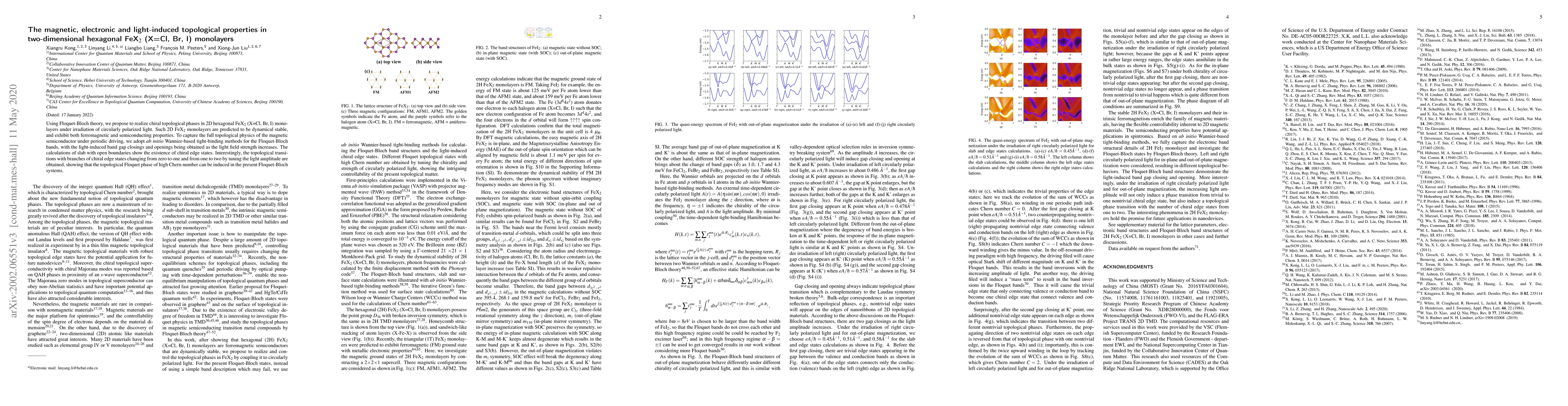 This paper proposes the realization of chiral topological phases in 2D hexagonal FeX2 (X=Cl, Br, I) monolayers under circularly polarized light using Floquet-Bloch theory. The study predicts these materials to exhibit ferromagnetic and semiconducting properties, with topological transitions and chiral edge states induced by varying light field strength.
