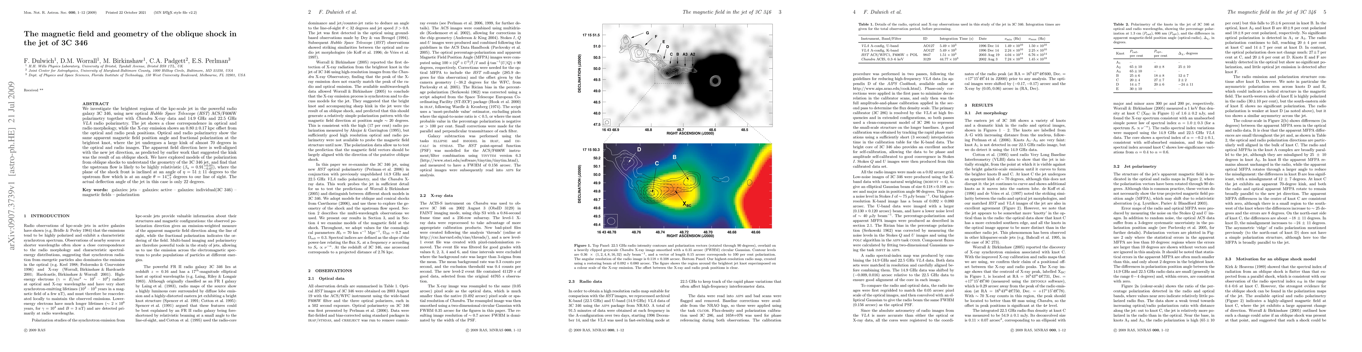 The study of 3C 346's jet reveals a close match between optical and radio morphology, with X-ray emission offset. Polarimetry at the brightest knot, a large jet kink of 70 degrees, aligns with oblique shock models. The upstream flow is inferred to be highly relativistic, with a shock front inclination of 51 degrees to the flow, and a jet deflection of 22 degrees.