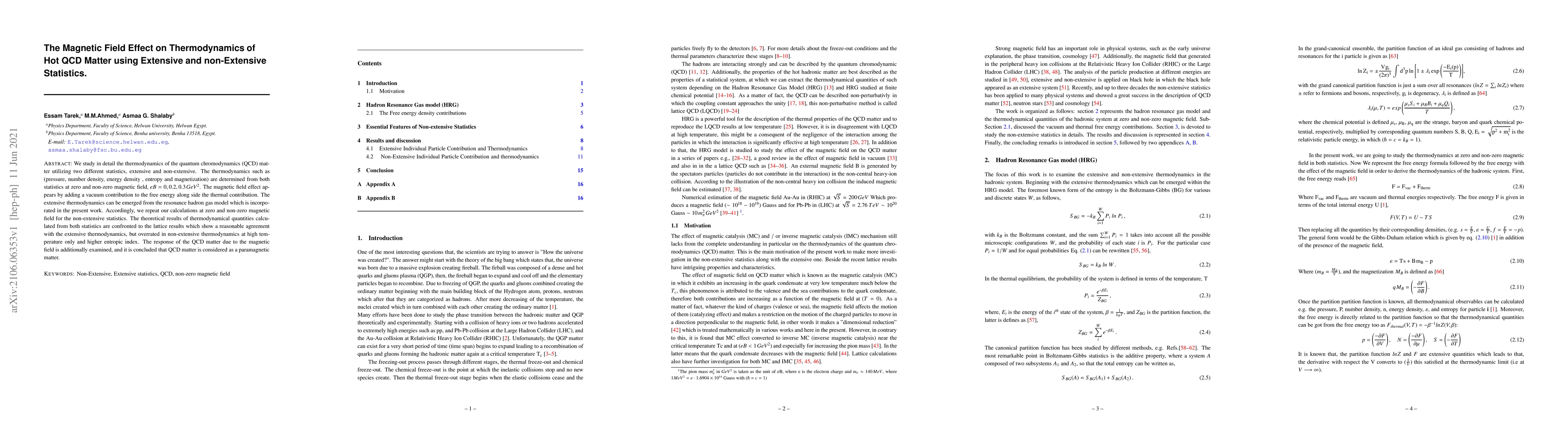 This paper investigates the thermodynamics of hot QCD matter using both extensive and non-extensive statistics, finding that extensive thermodynamics aligns well with lattice results, while non-extensive results overestimate at high temperatures. The study concludes that QCD matter behaves as paramagnetic under magnetic fields.