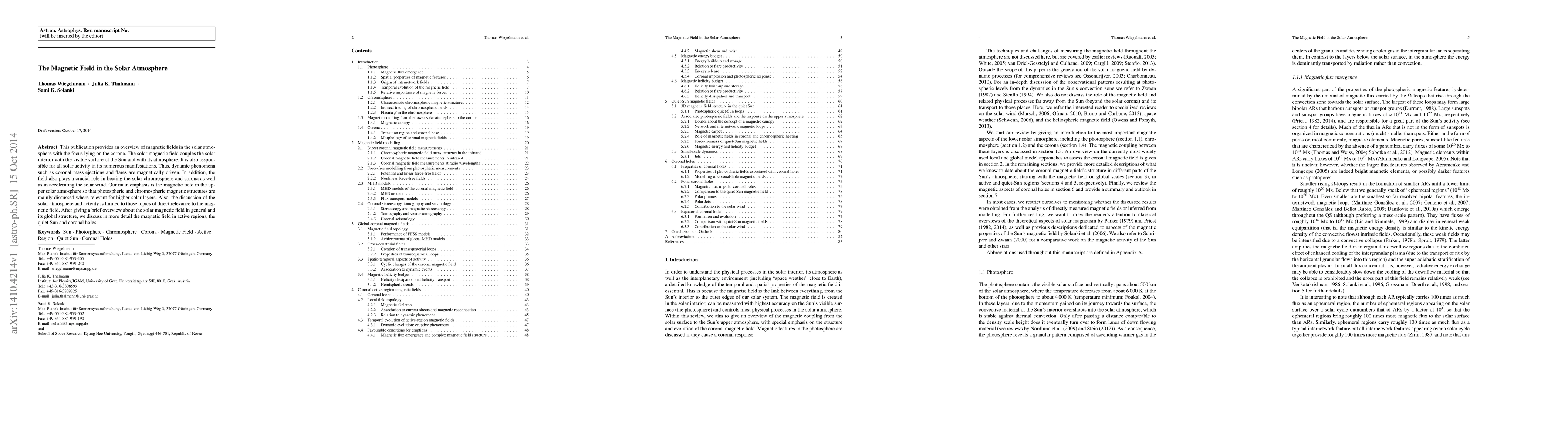This paper reviews the magnetic fields in the solar atmosphere, particularly the corona, detailing their role in solar activity, heating, and wind acceleration. It focuses on the magnetic field's influence in active regions, the quiet Sun, and coronal holes, while briefly covering the global structure of the solar magnetic field.
