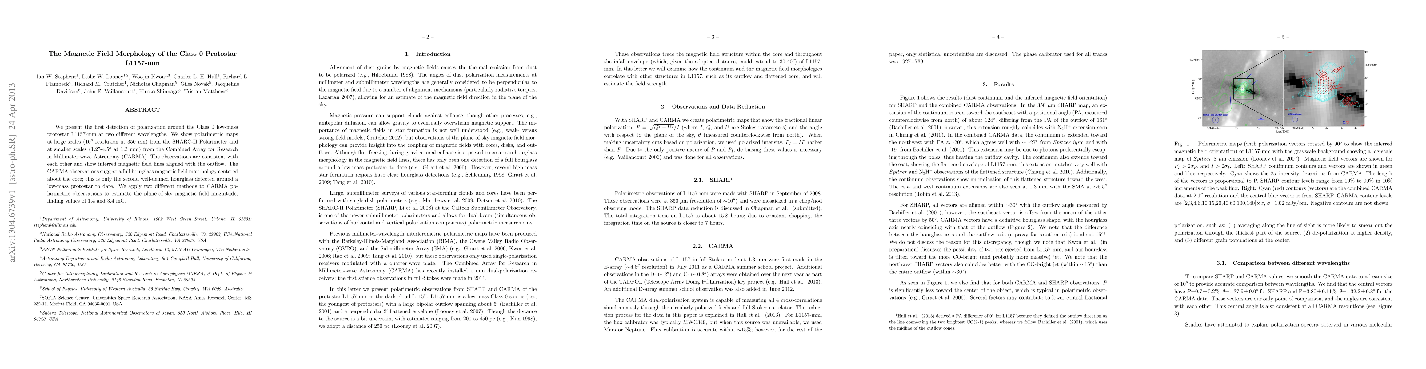 Researchers detected polarization around the Class 0 protostar L1157-mm at two wavelengths, finding a full hourglass magnetic field morphology centered about the core with estimated magnetic field magnitudes of 1.4-3.4 mG.