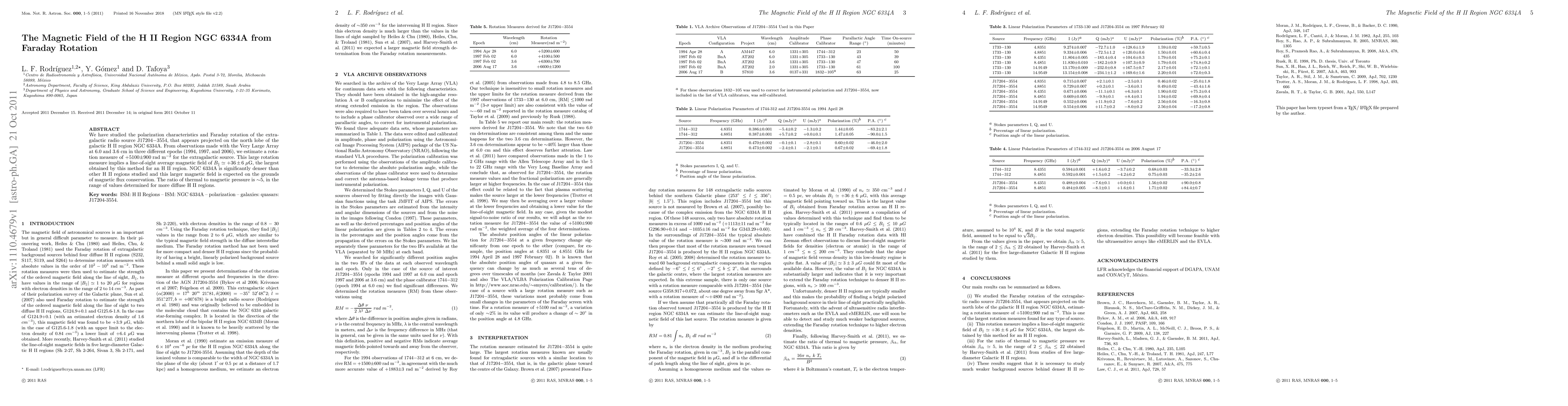 We have studied the polarization characteristics and Faraday rotation of the extragalactic radio source J17204$-$3554, that appears projected on the north lobe of the galactic H II region NGC 6334A. From observations made with the Very Large Array at 6.0 and 3.6 cm in three different epochs (1994, 1997, and 2006), we estimate a rotation measure of +5100$\pm$900 rad m$^{-2}$ for the extragalactic source. This large rotation measure implies a line-of-sight average magnetic field of $B_\parallel \simeq +36\pm6$ $\mu$G, the largest obtained by this method for an H II region. NGC 6334A is significantly denser than other H II regions studied and this larger magnetic field is expected on the grounds of magnetic flux conservation. The ratio of thermal to magnetic pressure is $\sim$5, in the range of values determined for more diffuse H II regions.