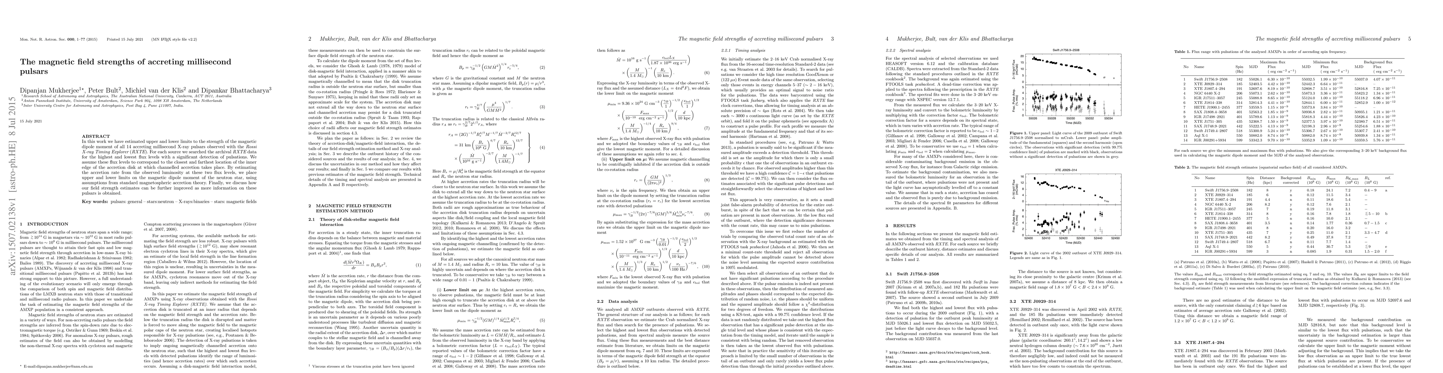 This study estimates upper and lower limits for the magnetic dipole moments of 14 accreting millisecond X-ray pulsars using RXTE data, correlating flux levels with accretion disk distances to infer magnetic field strengths. The findings suggest potential improvements with additional pulsar data.