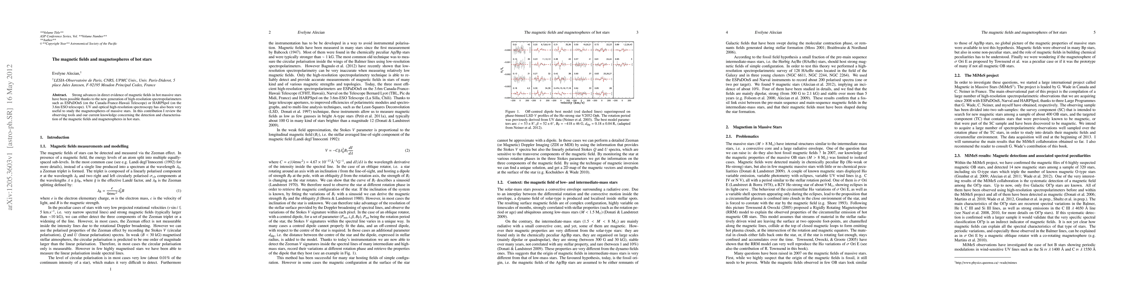 This paper reviews the advancements in detecting and characterizing magnetic fields in hot massive stars using high-resolution spectropolarimeters and UV/optical spectroscopy, highlighting the tools like ESPaDOnS and HARPSpol. It summarizes current knowledge on the magnetospheres of these stars.