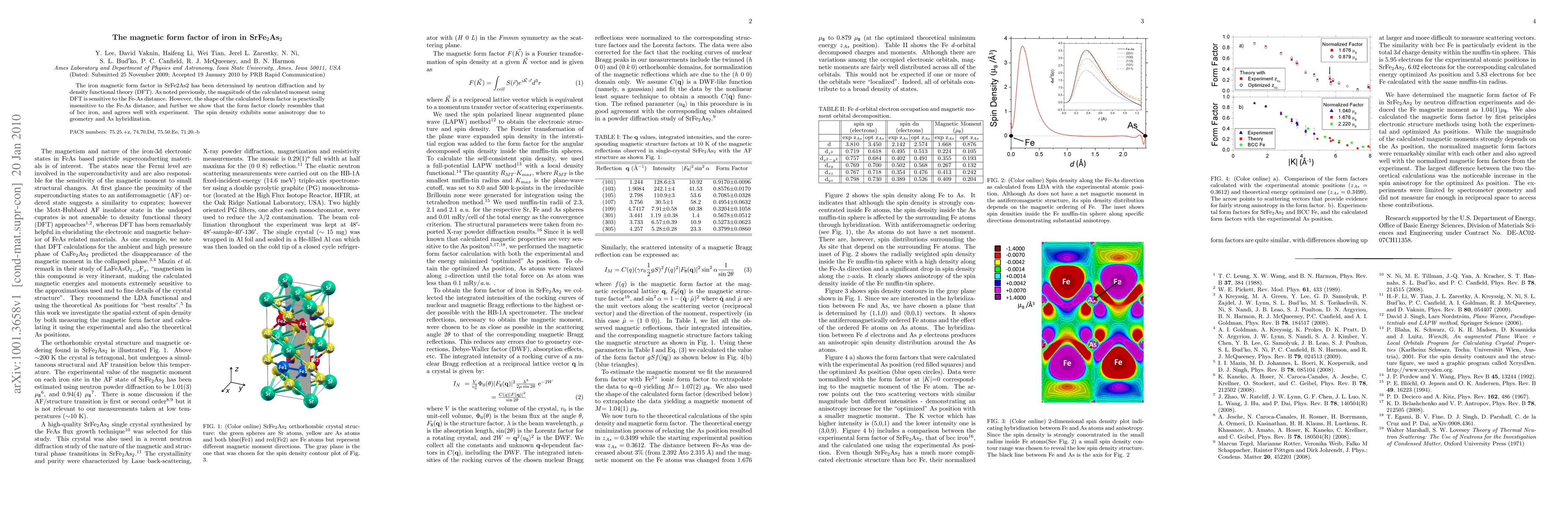 The iron magnetic form factor in SrFe2As2 has been determined by neutron diffraction and by density functional theory (DFT). As noted previously, the magnitude of the calculated moment using DFT is sensitive to the Fe-As distance. However, the shape of the calculated form factor is practically insensitive to the Fe-As distance, and further we show that the form factor closely resembles that of bcc iron, and agrees well with experiment. The spin density exhibits some anisotropy due to geometry and As hybridization.