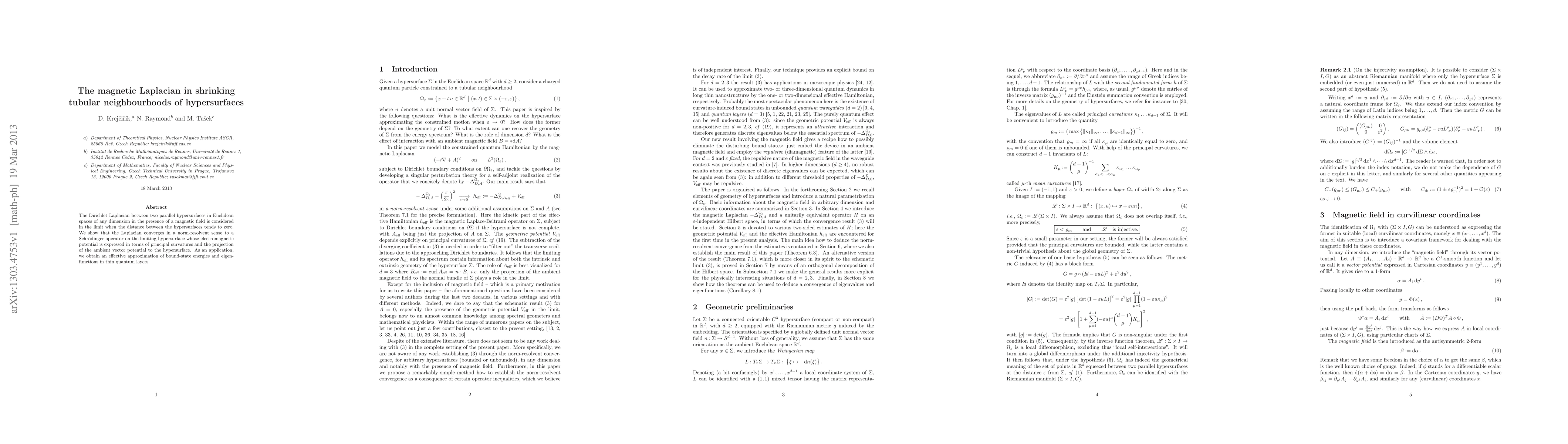 This paper investigates the behavior of the Dirichlet Laplacian in shrinking tubular neighborhoods around parallel hypersurfaces under a magnetic field, showing its convergence to a Schrödinger operator on the limiting surface. The effective potential is derived from the principal curvatures and the projected ambient vector potential, providing an approximation for bound-state energies in thin quantum layers.