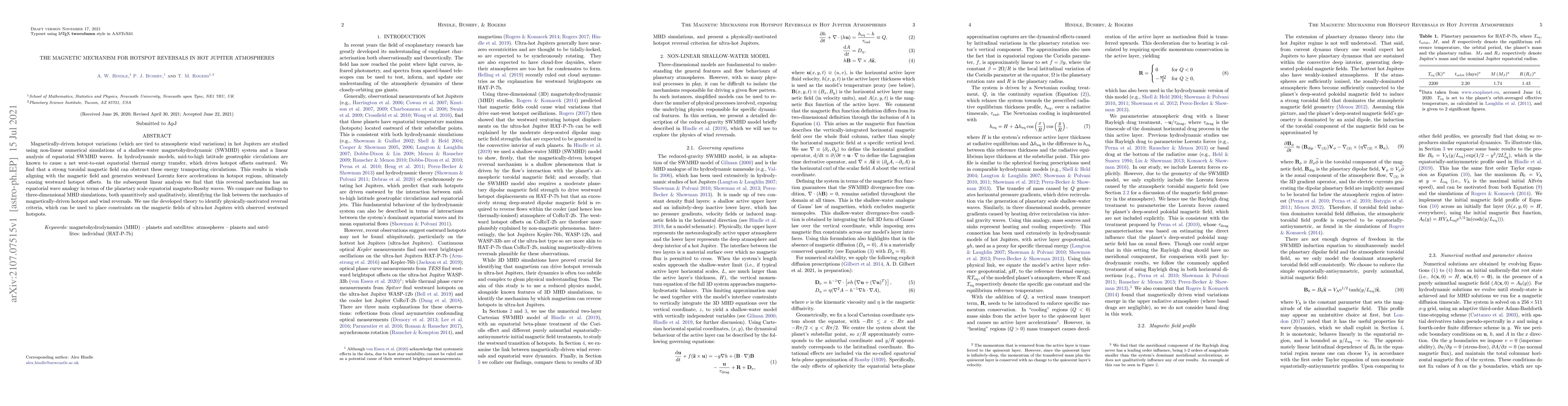 Magnetically-driven hotspot variations (which are tied to atmospheric wind variations) in hot Jupiters are studied using non-linear numerical simulations of a shallow-water magnetohydrodynamic (SWMHD) system and a linear analysis of equatorial SWMHD waves. In hydrodynamic models, mid-to-high latitude geostrophic circulations are known to cause a net west-to-east equatorial thermal energy transfer, which drives hotspot offsets eastward. We find that a strong toroidal magnetic field can obstruct these energy transporting circulations. This results in winds aligning with the magnetic field and generates westward Lorentz force accelerations in hotspot regions, ultimately causing westward hotspot offsets. In the subsequent linear analysis we find that this reversal mechanism has an equatorial wave analogy in terms of the planetary scale equatorial magneto-Rossby waves. We compare our findings to three-dimensional MHD simulations, both quantitively and qualitatively, identifying the link between the mechanics of magnetically-driven hotspot and wind reversals. We use the developed theory to identify physically-motivated reversal criteria, which can be used to place constraints on the magnetic fields of ultra-hot Jupiters with observed westward hotspots.