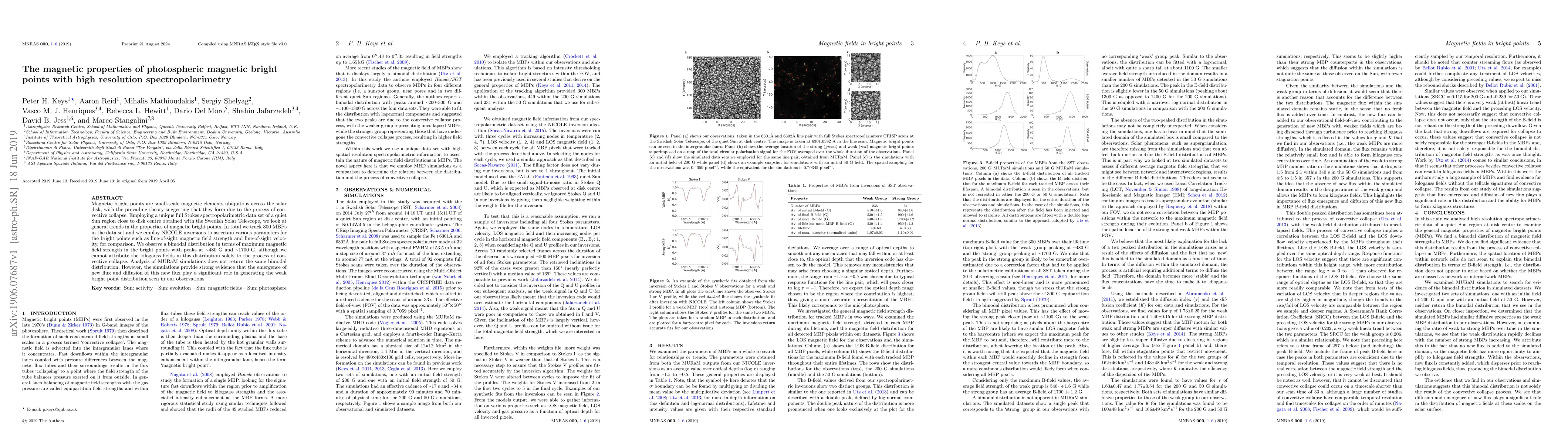 This study uses high-resolution spectropolarimetry from the Swedish Solar Telescope to analyze 300 magnetic bright points, finding a bimodal distribution of maximum magnetic field strengths peaking at ~480 G and ~1700 G, with the latter possibly not solely due to convective collapse. Simulations suggest that flux emergence and diffusion contribute to the formation of the observed magnetic bright points.