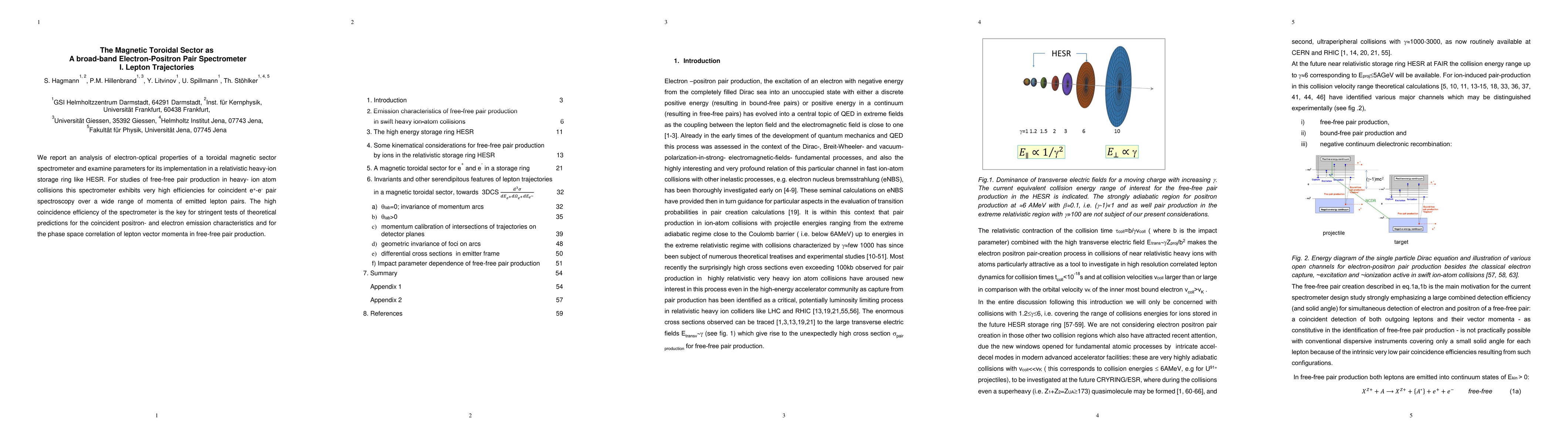 This paper analyzes the electron-optical properties of a toroidal magnetic sector spectrometer, highlighting its high efficiency for coincident electron-positron pair spectroscopy over a broad range of momenta. The spectrometer's design is particularly suited for studying free-free pair production in heavy-ion atom collisions, enabling stringent tests of theoretical predictions for lepton emission characteristics.