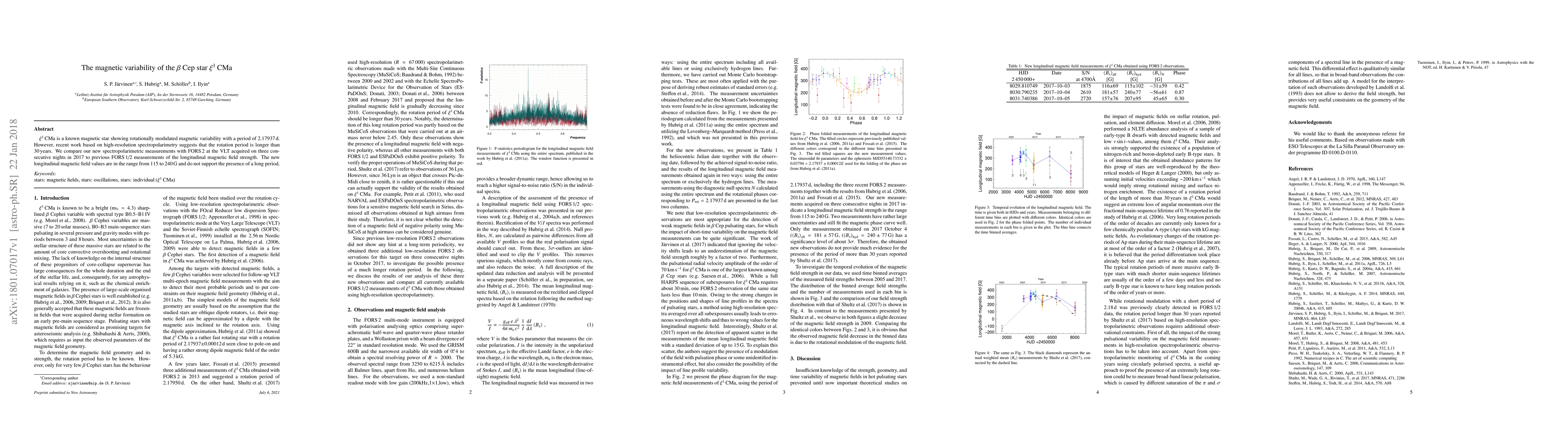 $\xi^{1}$ CMa is a known magnetic star showing rotationally modulated magnetic variability with a period of 2.17937 d. However, recent work based on high-resolution spectropolarimetry suggests that the rotation period is longer than 30 years. We compare our new spectropolarimetric measurements with FORS 2 at the VLT acquired on three consecutive nights in 2017 to previous FORS 1/2 measurements of the longitudinal magnetic field strength. The new longitudinal magnetic field values are in the range from 115 to 240 G and do not support the presence of a long period.