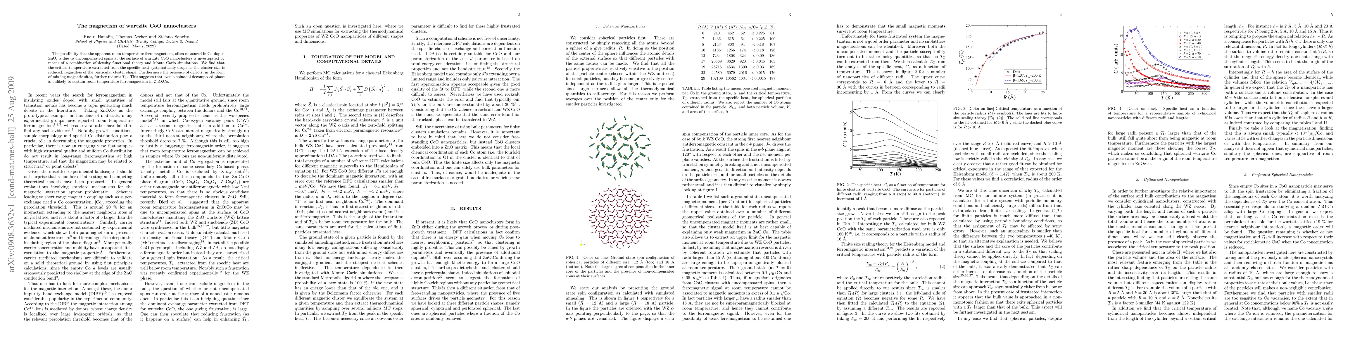 The possibility that the apparent room temperature ferromagnetism, often measured in Co-doped ZnO, is due to uncompensated spins at the surface of wurtzite CoO nanoclusters is investigated by means of a combination of density functional theory and Monte Carlo simulations. We find that the critical temperature extracted from the specific heat systematically drops as the cluster size is reduced, regardless of the particular cluster shape. Furthermore the presence of defects, in the form of missing magnetic sites, further reduces $T_\mathrm{C}$. This suggests that even a spinodal decomposed phase is unlikely to sustain room temperature ferromagnetism in ZnO:Co.