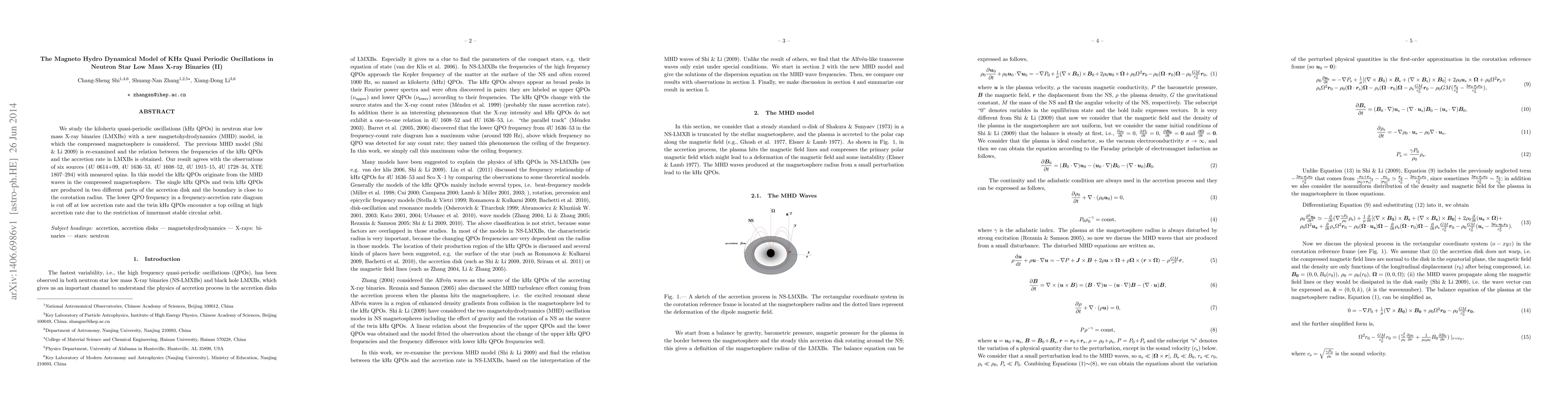 This paper presents a new magnetohydrodynamic (MHD) model to study kilohertz quasi-periodic oscillations (kHz QPOs) in neutron star low mass X-ray binaries, considering the compressed magnetosphere. The model explains the observed kHz QPOs' frequencies in relation to accretion rates, agreeing with observations of six neutron star sources.
