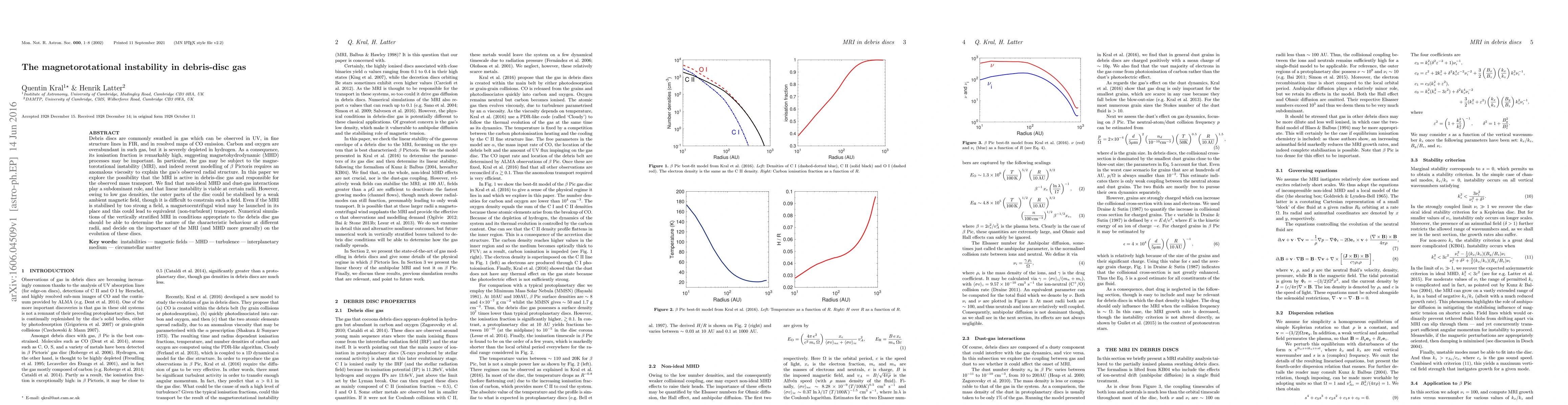 This paper investigates the magnetorotational instability (MRI) in debris-disc gas, suggesting that while MRI may be active and responsible for mass transport, non-ideal MHD and dust-gas interactions are less significant. The study concludes that strong magnetic fields could stabilize the outer disc, potentially leading to magnetocentrifugal wind instead.