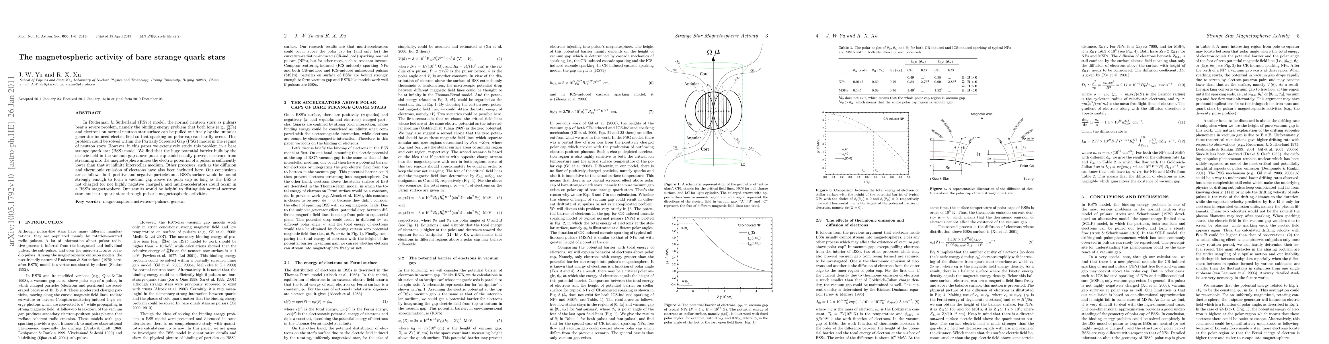 In Ruderman & Sutherland (RS75) model, the normal neutron stars as pulsars bear a severe problem, namely the binding energy problem that both ions (e.g., ${}_{26}^{56}$Fe) and electrons on normal neutron star surface can be pulled out freely by the unipolar generator induced electric field so that sparking on polar cap can hardly occur. {\bf This problem could be solved within the Partially Screened Gap (PSG) model in the regime of neutron stars}. However, in this paper we extensively study this problem in a bare strange quark star (BSS) model. We find that the huge potential barrier built by the electric field in the vacuum gap above polar cap could usually prevent electrons from streaming into the magnetosphere unless the electric potential of a pulsar is sufficiently lower than that at infinite interstellar medium. Other processes, such as the diffusion and thermionic emission of electrons have also been included here. Our conclusions are as follows: both positive and negative particles on a BSS's surface would be bound strongly enough to form a vacuum gap above its polar cap as long as the BSS is not charged (or not highly negative charged), and multi-accelerators could occur in a BSS's magnetosphere. Our results would be helpful to distinguish normal neutron stars and bare quark stars through pulsar's magnetospheric activities.
