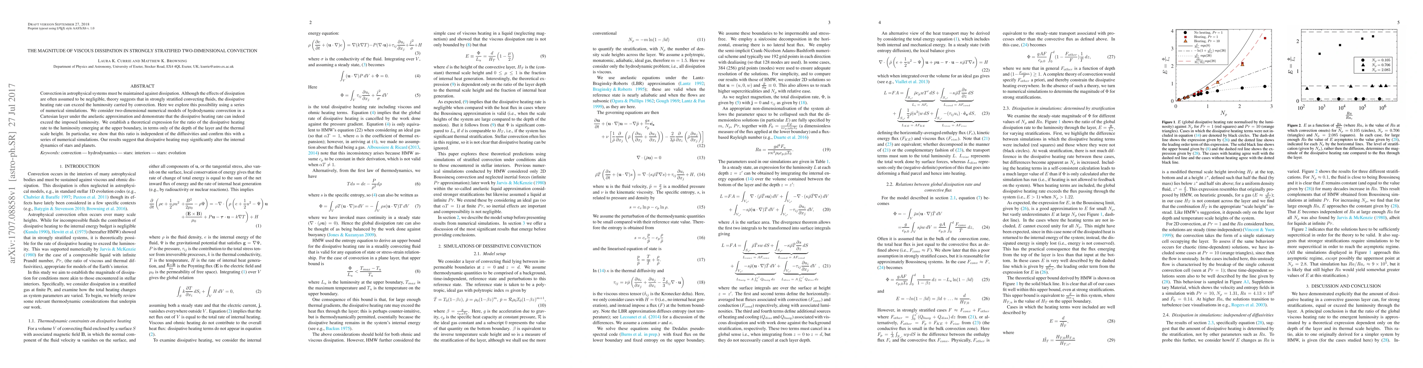 This paper investigates the impact of viscous dissipation in strongly stratified two-dimensional convection, demonstrating that dissipative heating can surpass the luminosity carried by convection. Theoretical and numerical models reveal a ratio of dissipative heating to luminosity independent of diffusivities, suggesting significant implications for the internal dynamics of stars and planets.