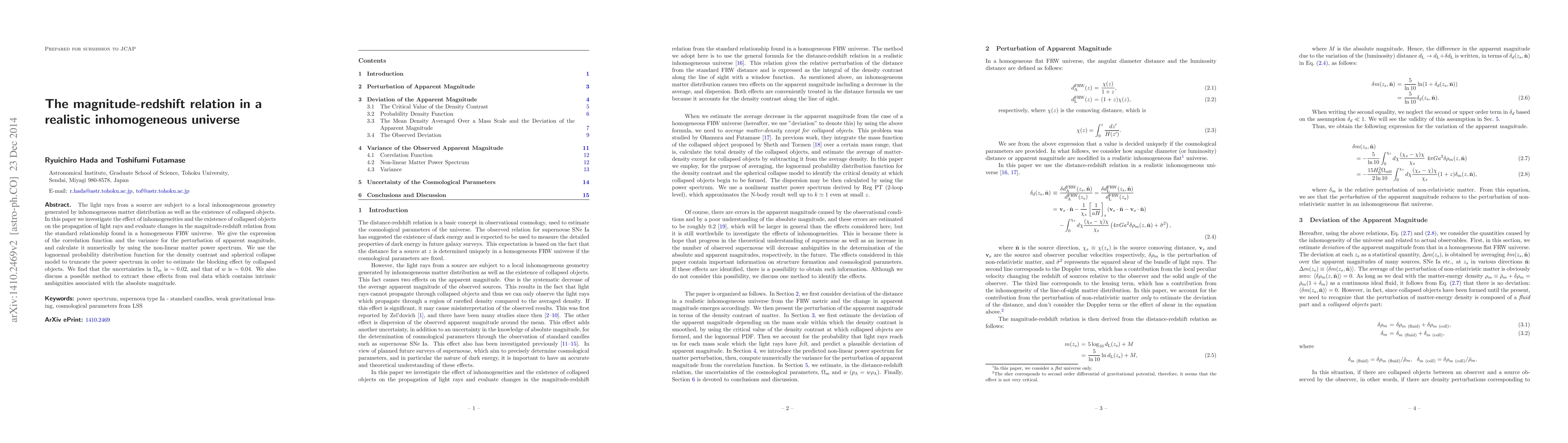 This paper examines how inhomogeneities in the universe and collapsed objects affect the magnitude-redshift relation, finding that uncertainties in $\Omega_m$ and $w$ are approximately 0.02 and 0.04, respectively. It proposes a method to extract these effects from observational data despite intrinsic ambiguities.