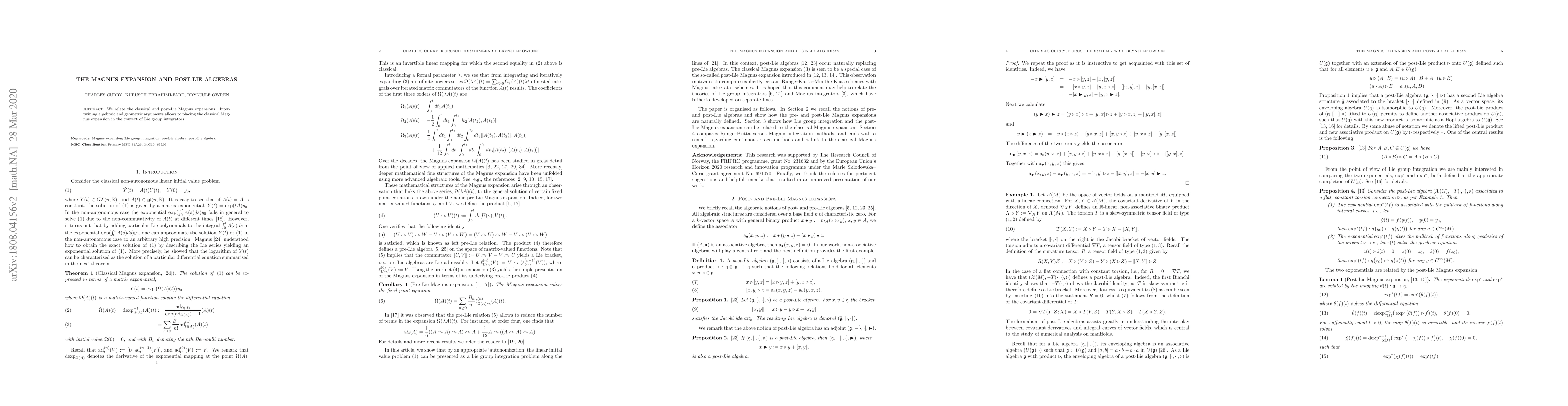 Summary: This paper connects classical Magnus expansion and post-Lie algebra concepts, using algebraic and geometric arguments to integrate the classical expansion within the framework of Lie group integrators.