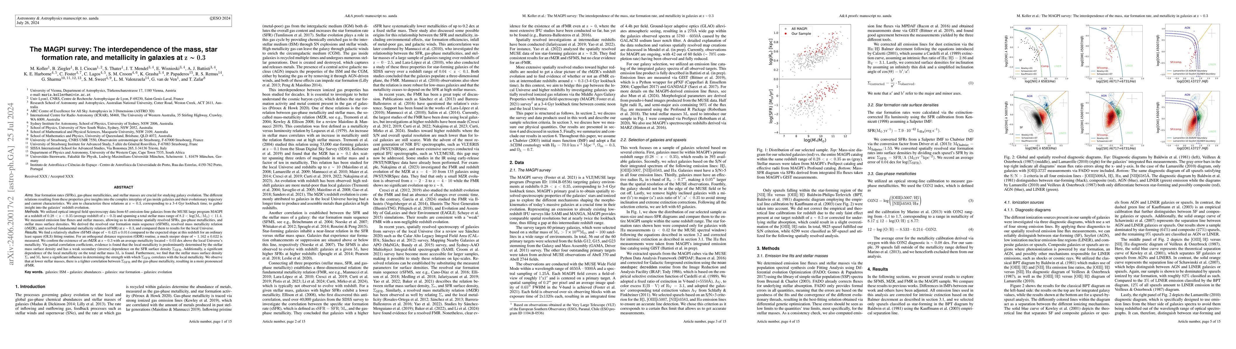 The MAGPI survey investigates galaxy properties at $z\sim 0.3$, revealing that star formation rate (SFR) and metallicity are weakly dependent on each other, with stellar mass having a stronger influence on metallicity. The resolved star formation main sequence slope is steeper when using orthogonal distance regression.