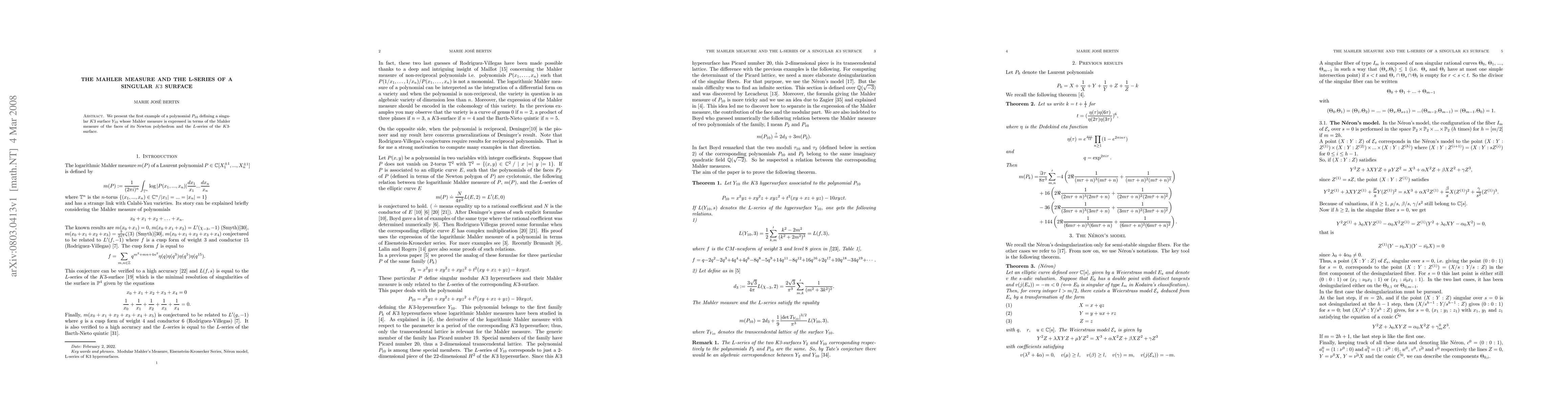 This paper introduces a singular K3-surface defined by a polynomial where the Mahler measure relates to the Mahler measures of its Newton polyhedron's faces and the L-series of the surface. This provides a novel connection between algebraic geometry and number theory.