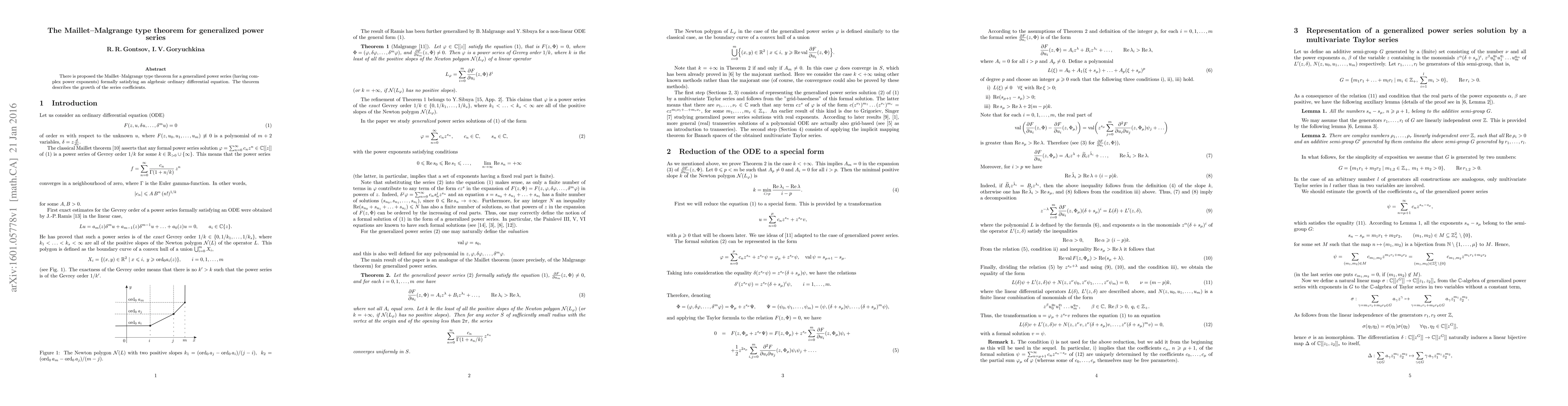 Summary: This paper proposes a Maillet-Malgrange type theorem for generalized power series with complex exponents that satisfy algebraic differential equations, detailing the growth pattern of their coefficients.