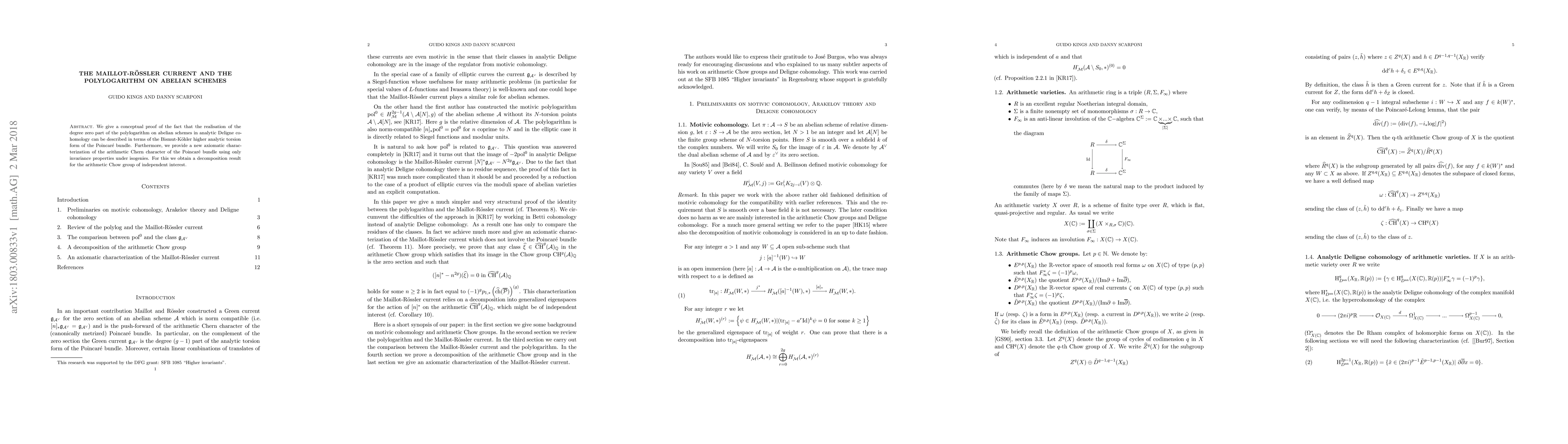 This paper proves that the degree zero part of the polylogarithm on abelian schemes can be realized in analytic Deligne cohomology via the Bismut-K\"ohler higher analytic torsion form of the Poincar\'e bundle, and provides an axiomatic characterization of the arithmetic Chern character using isogeny invariance, leading to a decomposition of the arithmetic Chow group.