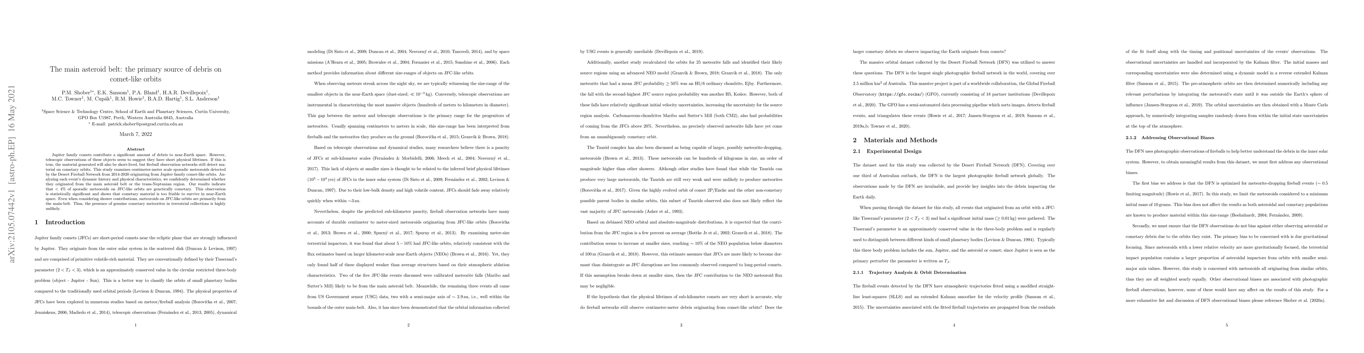 This study finds that the main asteroid belt is the primary source of debris on Jupiter family comet-like orbits, with less than 4% of sporadic meteoroids on these orbits originating from the trans-Neptunian region, indicating cometary material is too fragile to survive in near-Earth space.