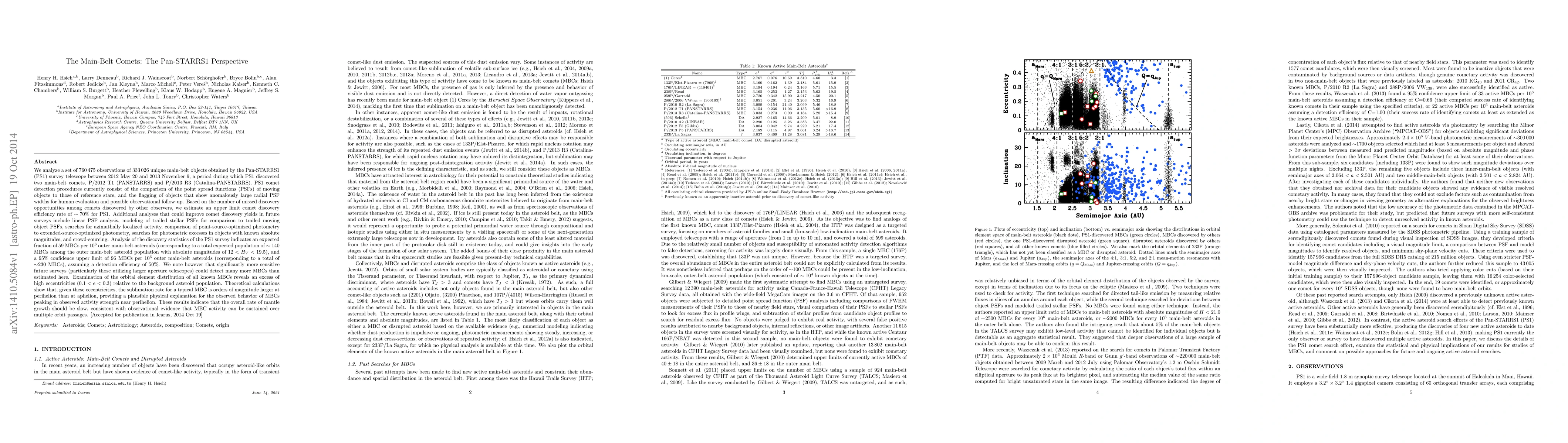 The Pan-STARRS1 survey detected two main-belt comets, estimating a 70% discovery efficiency rate. Future improvements in detection methods could reveal many more main-belt comets, with an expected 59 per 10^6 outer main-belt asteroids. High eccentricities in these comets suggest increased sublimation rates near perihelion.