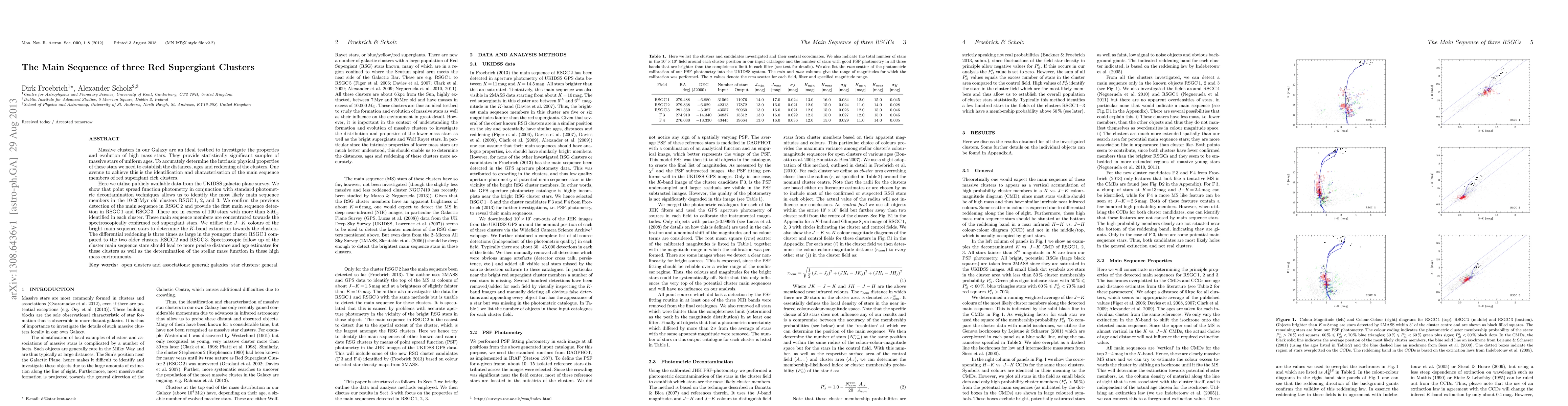 This paper identifies and characterizes the main sequence members in three red supergiant clusters (RSGC1, RSGC2, and RSGC3) using UKIDSS data, confirming the main sequence in RSGC2 and detecting it for the first time in RSGC1 and RSGC3. The study highlights the differential reddening among the clusters, with RSGC1 showing three times more extinction than the older clusters.