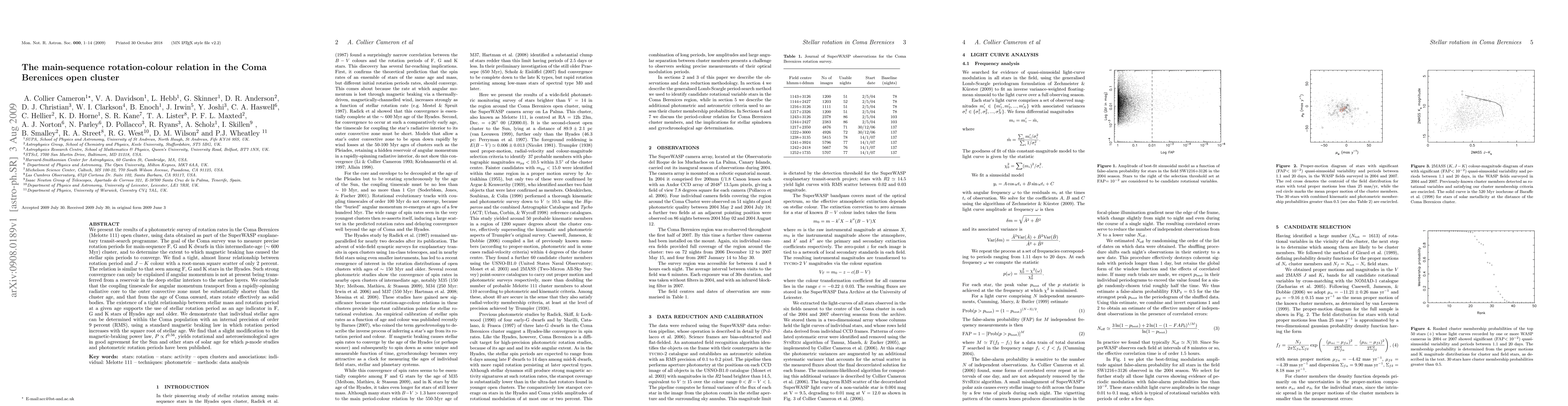 This study investigates the rotation-colour relationship in the Coma Berenices open cluster, revealing a tight linear correlation between rotation period and J-K colour, indicating that magnetic braking has caused stellar rotation rates to converge. The findings suggest that angular momentum transport from the core to the surface is efficient, allowing stars to rotate as solid bodies from the cluster's age onward.