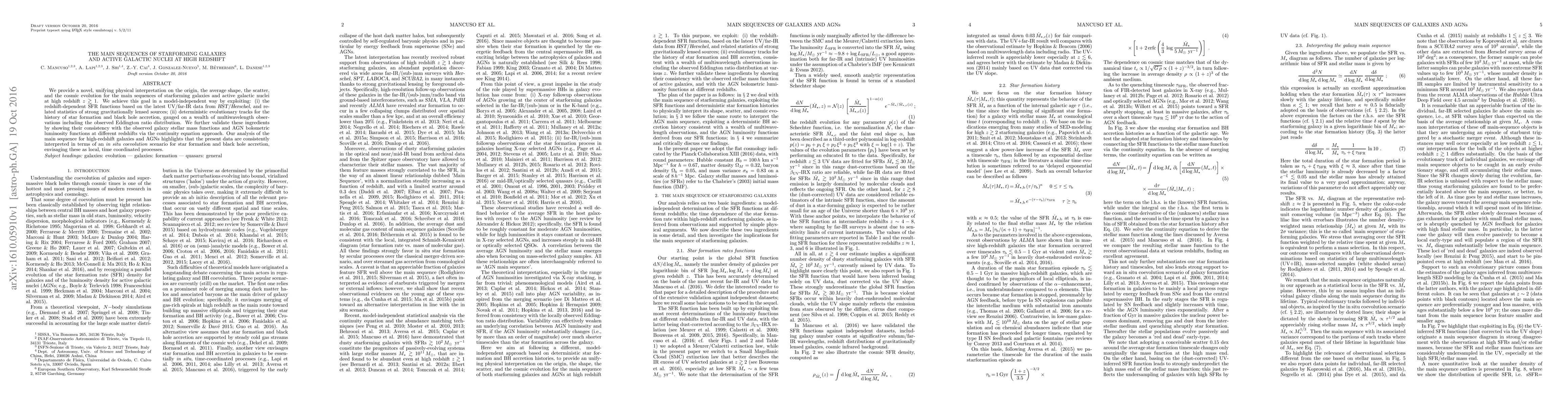 This paper presents a unifying model for the main sequences of starforming galaxies and active galactic nuclei at high redshift, using redshift-dependent SFR functions and evolutionary tracks for star formation and black hole accretion. The analysis supports an in situ coevolution scenario, where star formation and black hole accretion are locally and time-coordinated processes.