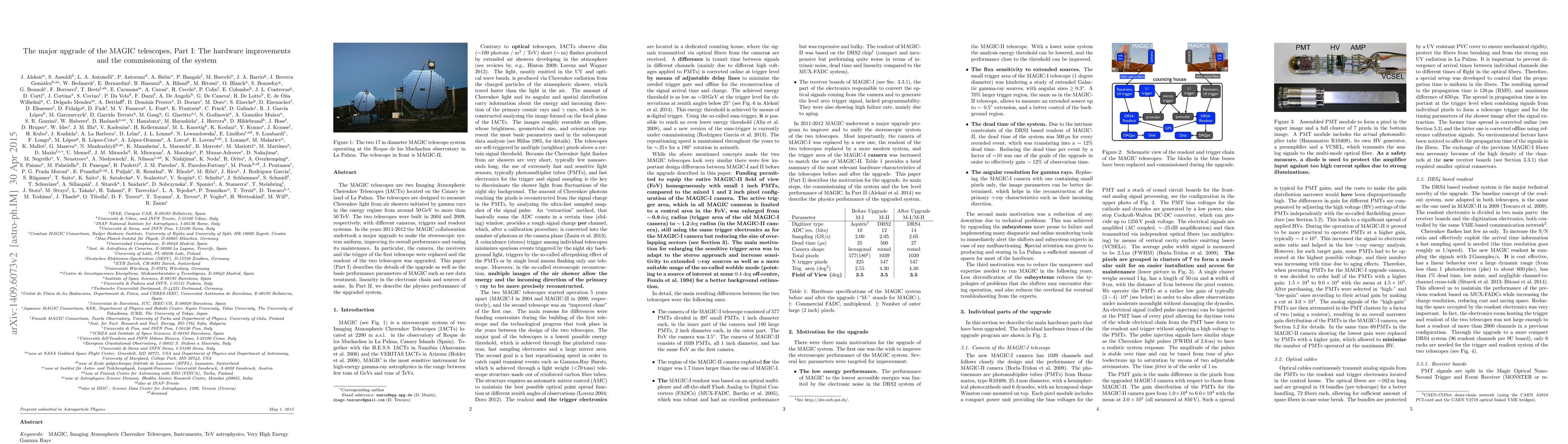 The MAGIC telescopes are two Imaging Atmospheric Cherenkov Telescopes (IACTs) located on the Canary island of La Palma. The telescopes are designed to measure Cherenkov light from air showers initiated by gamma rays in the energy regime from around 50 GeV to more than 50 TeV. The two telescopes were built in 2004 and 2009, respectively, with different cameras, triggers and readout systems. In the years 2011-2012 the MAGIC collaboration undertook a major upgrade to make the stereoscopic system uniform, improving its overall performance and easing its maintenance. In particular, the camera, the receivers and the trigger of the first telescope were replaced and the readout of the two telescopes was upgraded. This paper (Part I) describes the details of the upgrade as well as the basic performance parameters of MAGIC such as raw data treatment, dead time of the system, linearity in the electronic chain and sources of noise. In Part II, we describe the physics performance of the upgraded system.