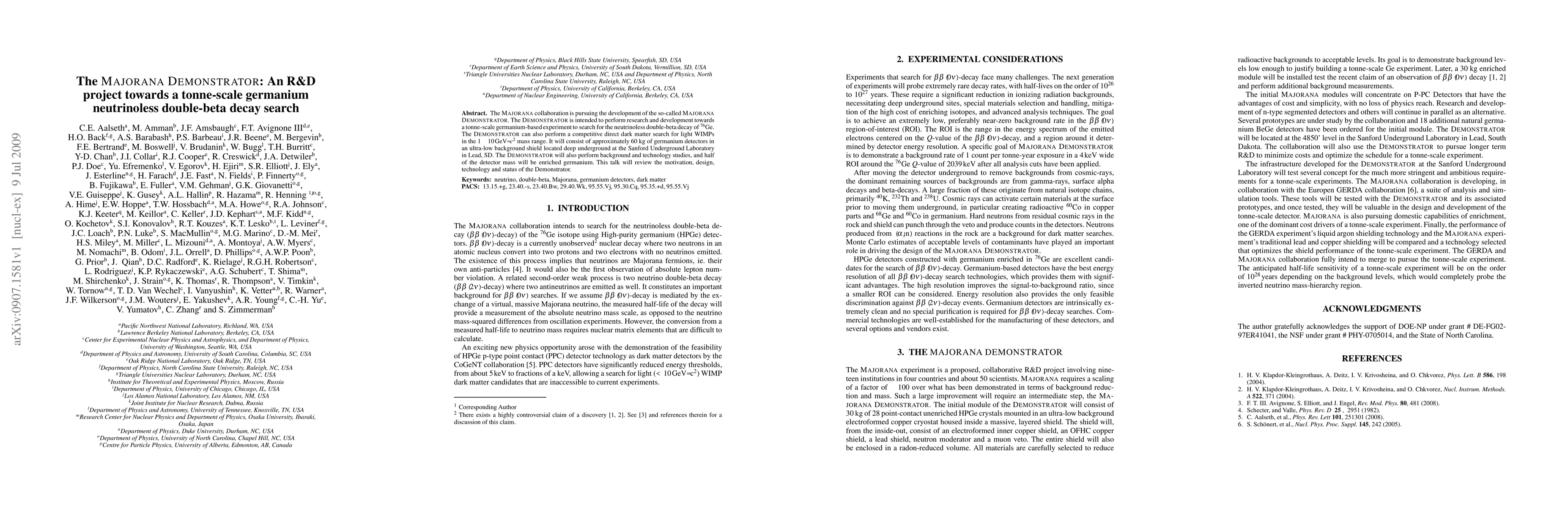 The MAJORANA DEMONSTRATOR aims to develop a germanium-based experiment to search for neutrinoless double-beta decay in Ge-76, with a focus on background reduction and technology advancements. It will also explore dark matter through WIMP detection and consists of 60-kg of enriched germanium detectors in an underground shield.