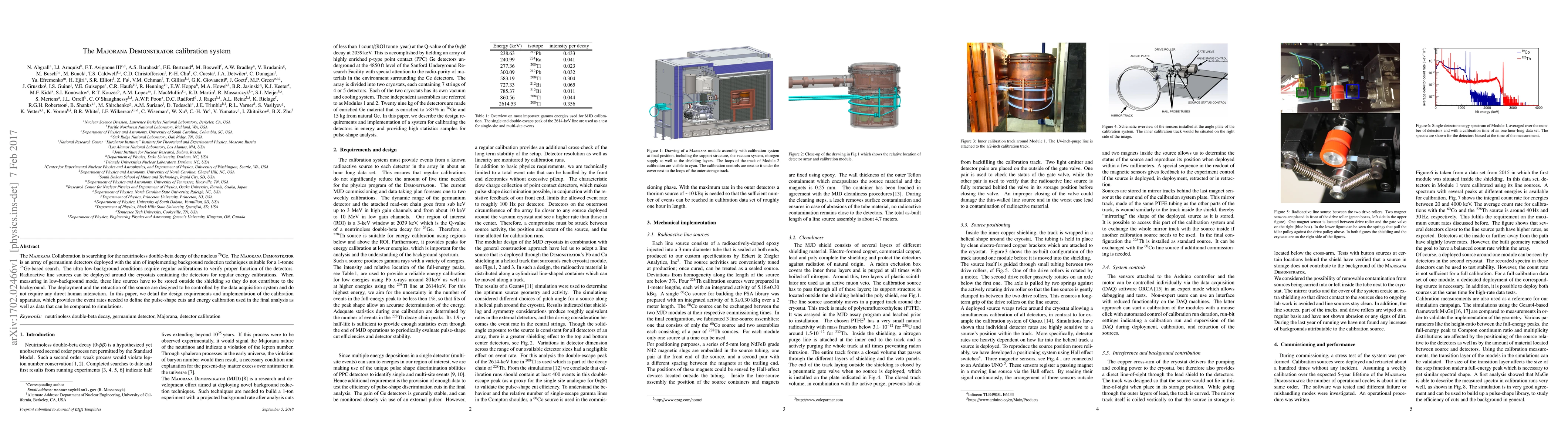 The MAJORANA DEMONSTRATOR employs an automated calibration system using radioactive line sources to ensure accurate detector function in ultra-low-background conditions, with deployment controlled by the data acquisition system to minimize background interference. This system supports the MAJORANA Collaboration's search for neutrinoless double-beta decay in germanium detectors.