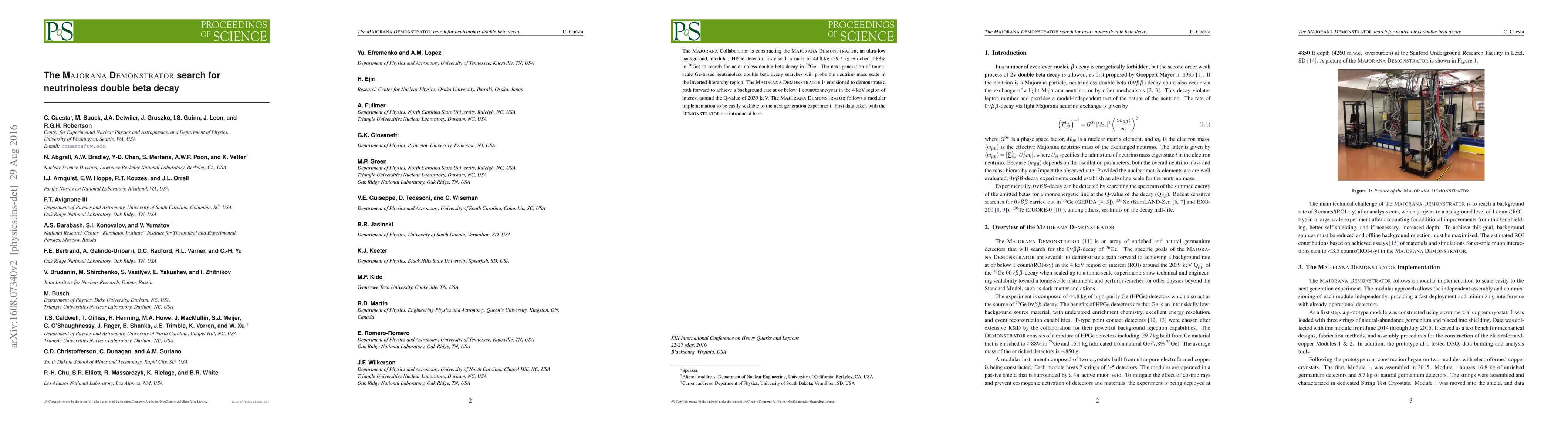 The MAJORANA DEMONSTRATOR, a modular HPGe detector array, aims to detect neutrinoless double beta decay in Ge-76, probing the inverted-hierarchy neutrino mass scale. Initial data show promising background rates, paving the way for future large-scale experiments.