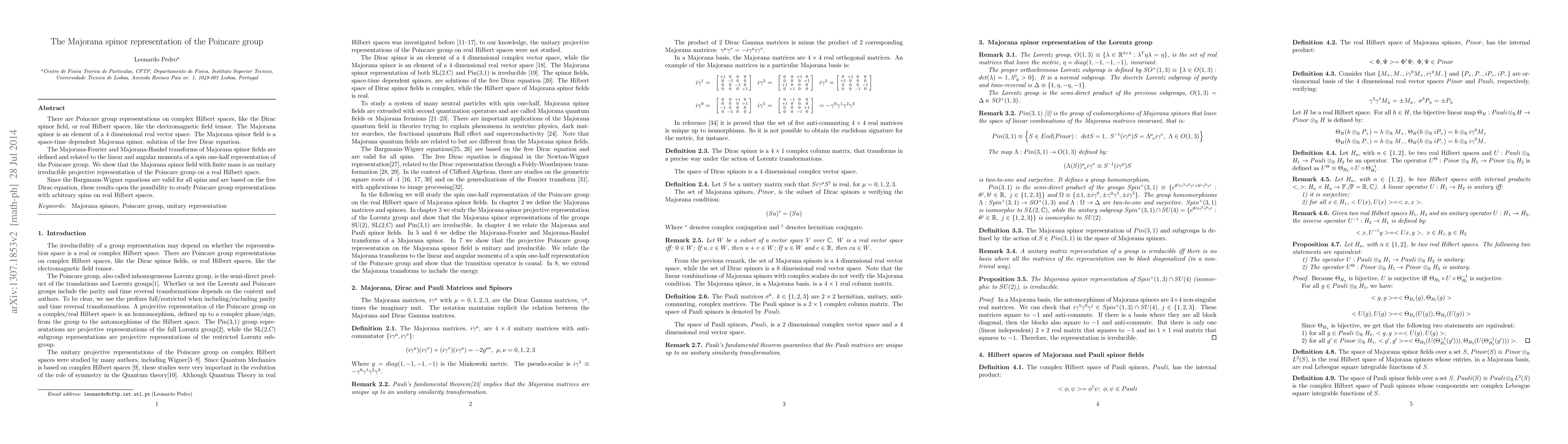 This paper explores the Majorana spinor representation of the Poincare group, defining Majorana-Fourier and Majorana-Hankel transforms and demonstrating that the Majorana spinor field is a unitary irreducible projective representation of the Poincare group on a real Hilbert space, potentially extending these findings to arbitrary spin representations.