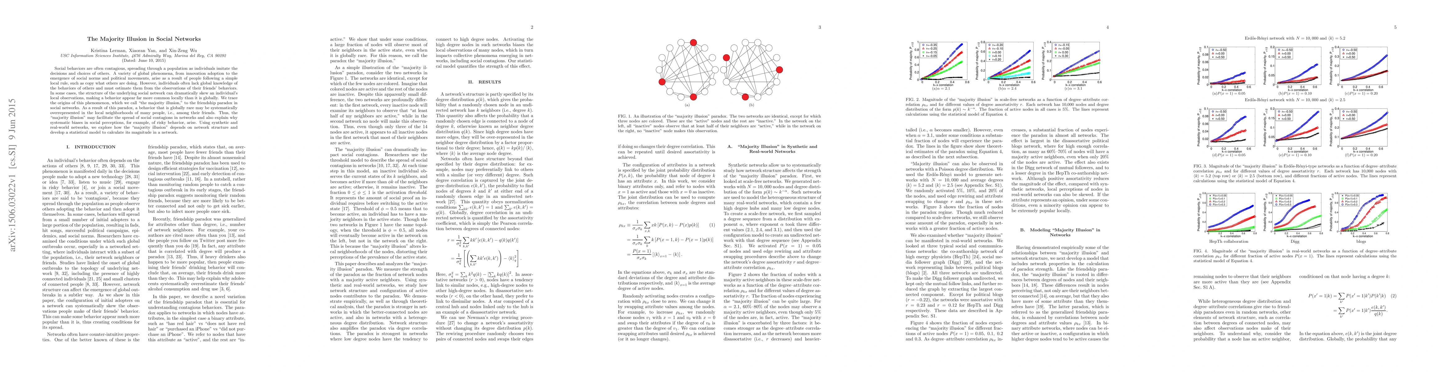 This paper investigates the "majority illusion" in social networks, where local observations can dramatically overestimate the prevalence of behaviors due to the friendship paradox. The authors explore how network structure influences this illusion and develop a statistical model to quantify its magnitude.