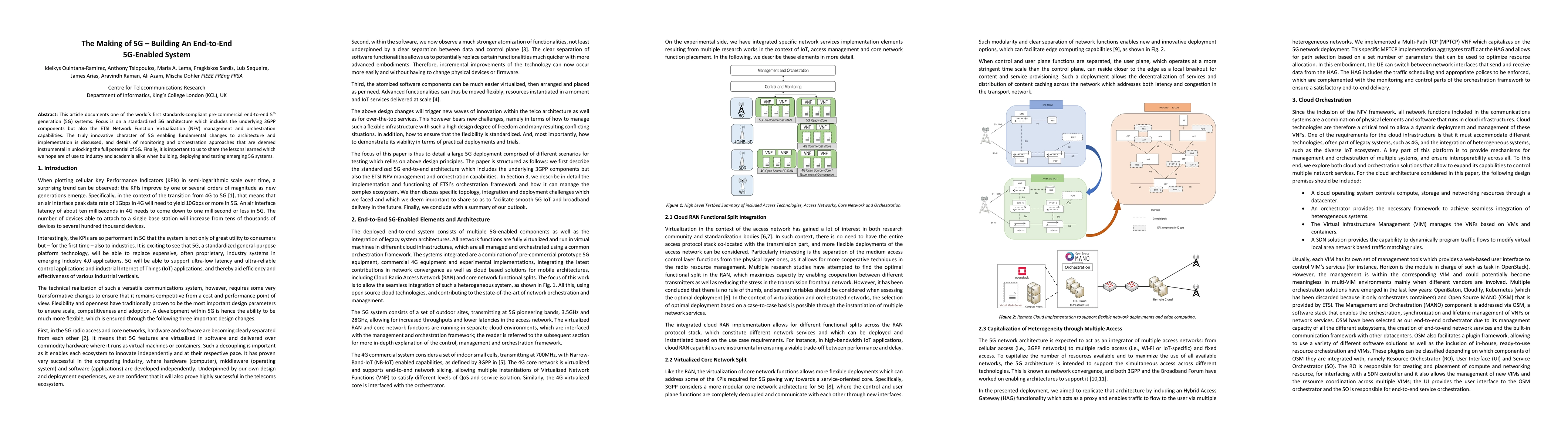 This paper details the first standards-compliant pre-commercial 5G system, emphasizing its innovative architecture and 3GPP components, along with ETSI NFV management. It shares valuable lessons learned from building and deploying this pioneering 5G system for future industry and academic endeavors.