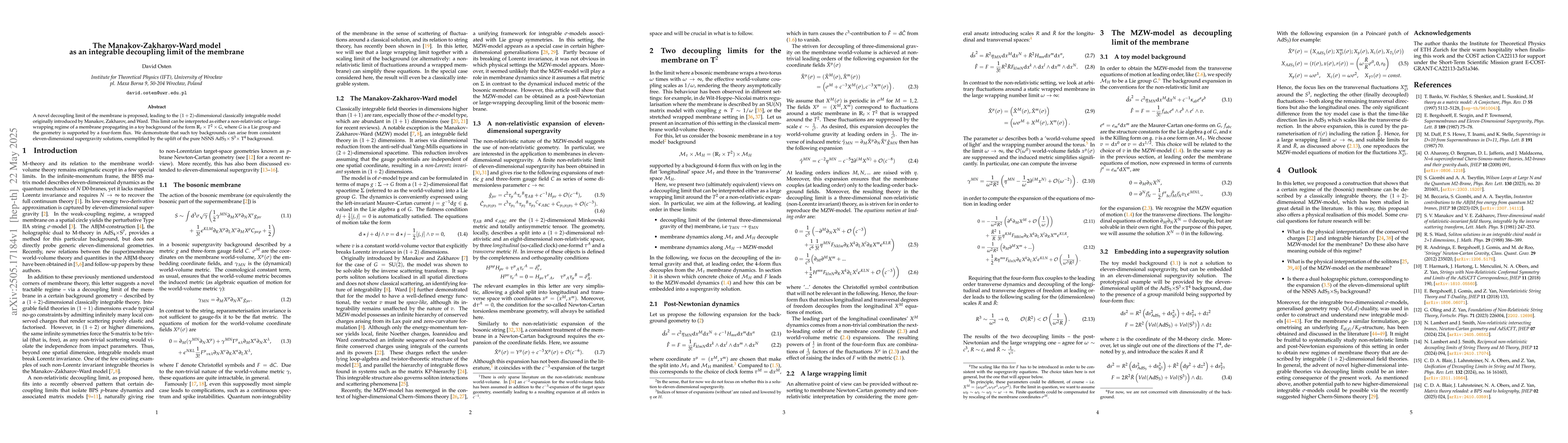 The research proposes a novel decoupling limit of the membrane leading to the Manakov-Zakharov-Ward model, demonstrated via eleven-dimensional supergravity solutions.